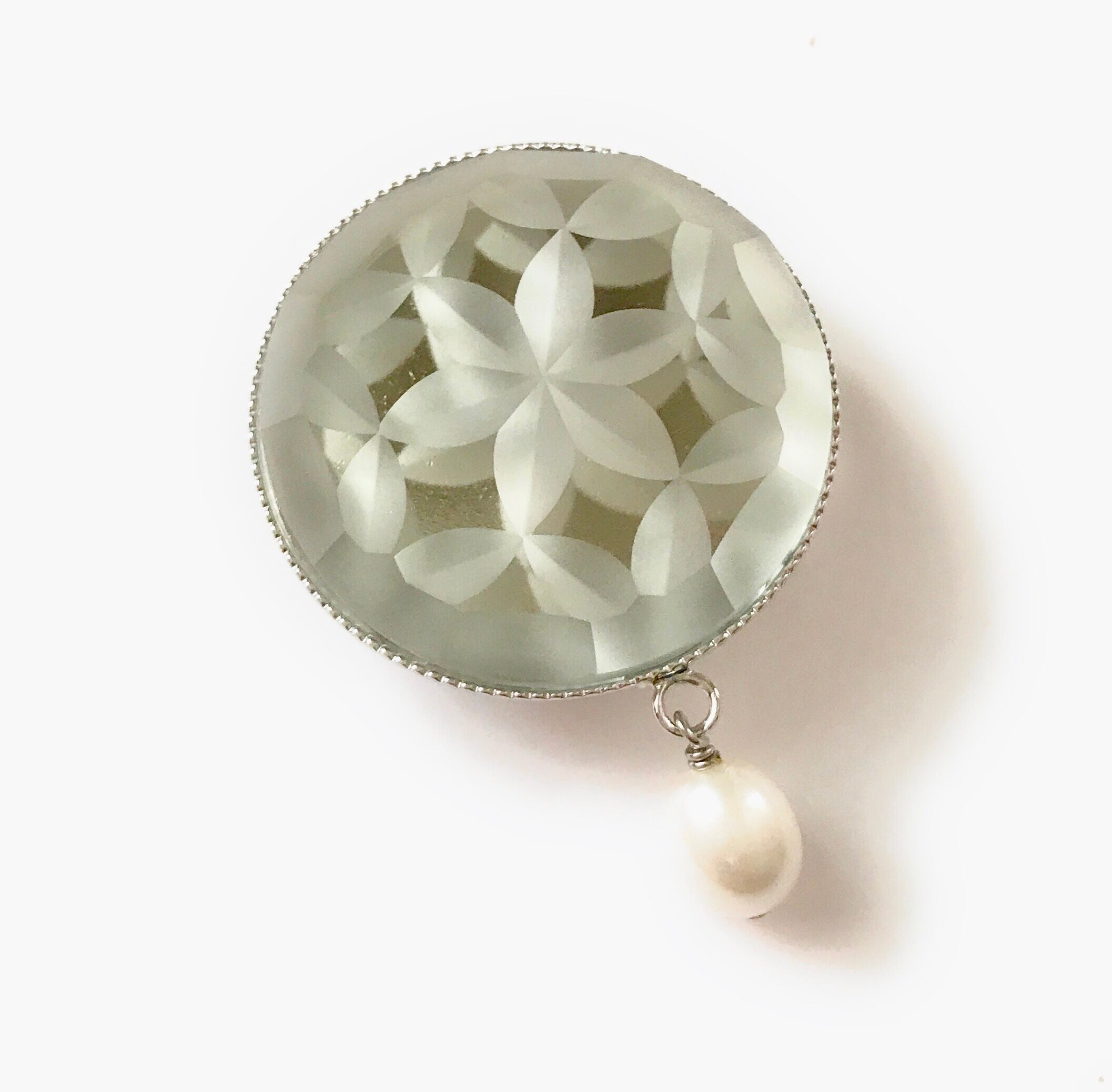 東京切子(花切子)帯留め 六花 パール・クリアー