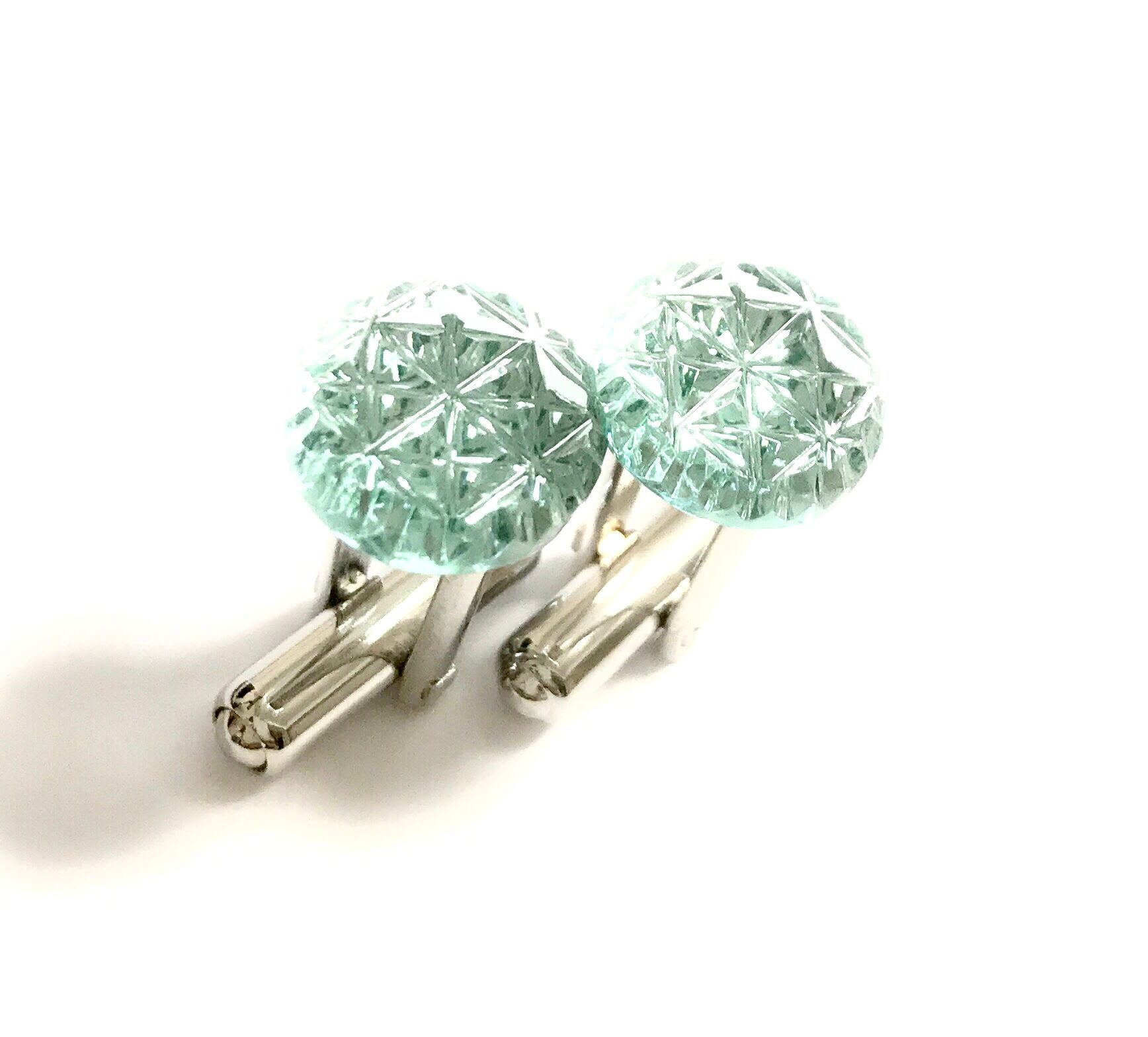 ガラスの透明感と「光と反射」が非常に美しいカフスボタンです。