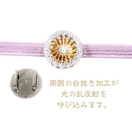 ガラスの裏側に反射加工を追加して、従来の帯留め(当社比)に比べてキラキラ感がアップしました。
