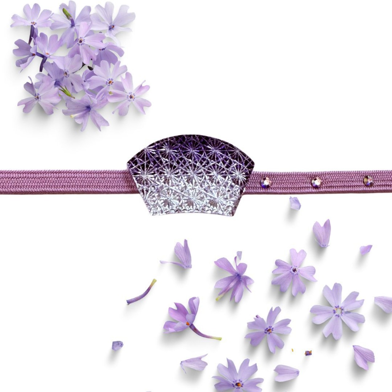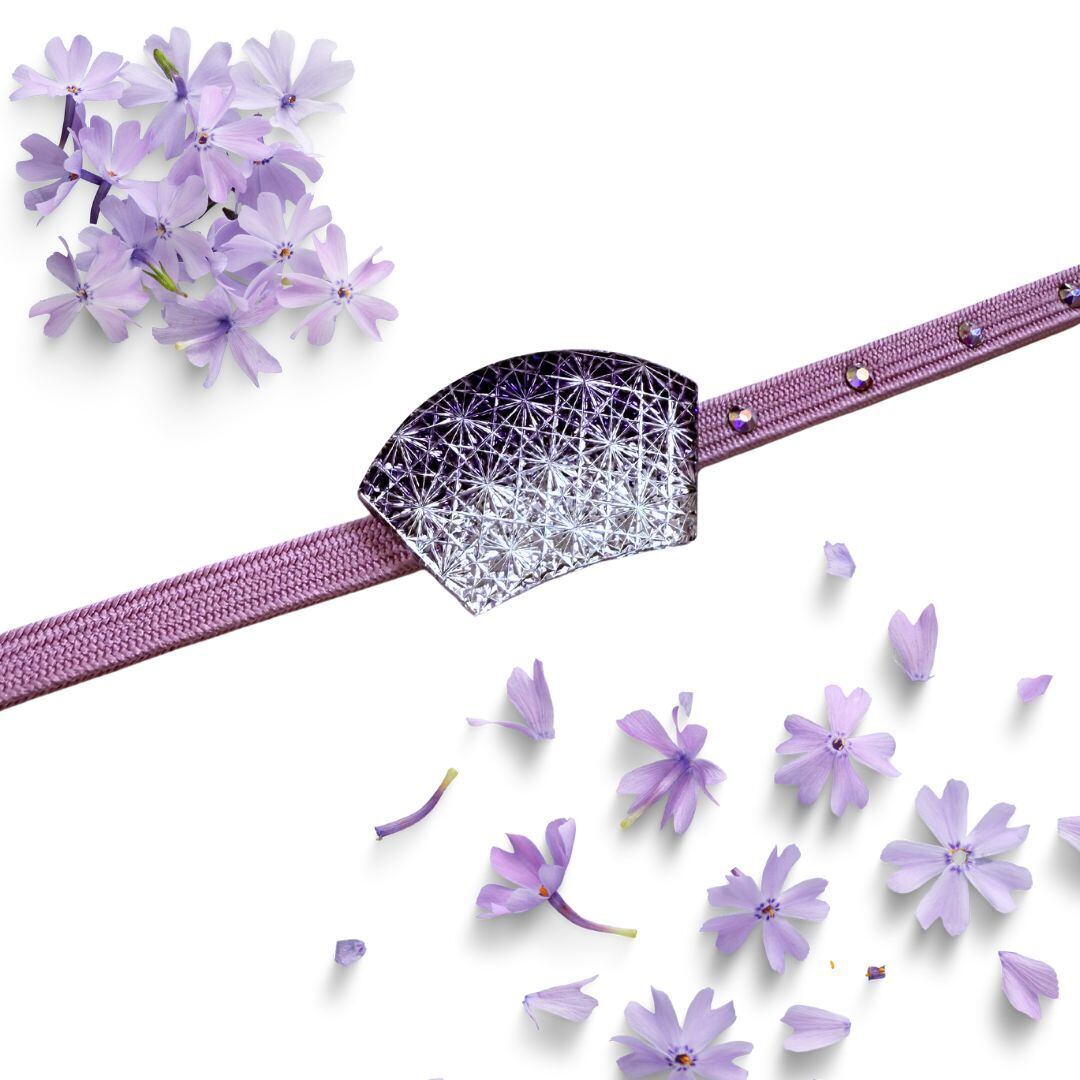「神を招く縁起物」東京切子帯留め 扇 菊繋ぎ グラデーション パープル
