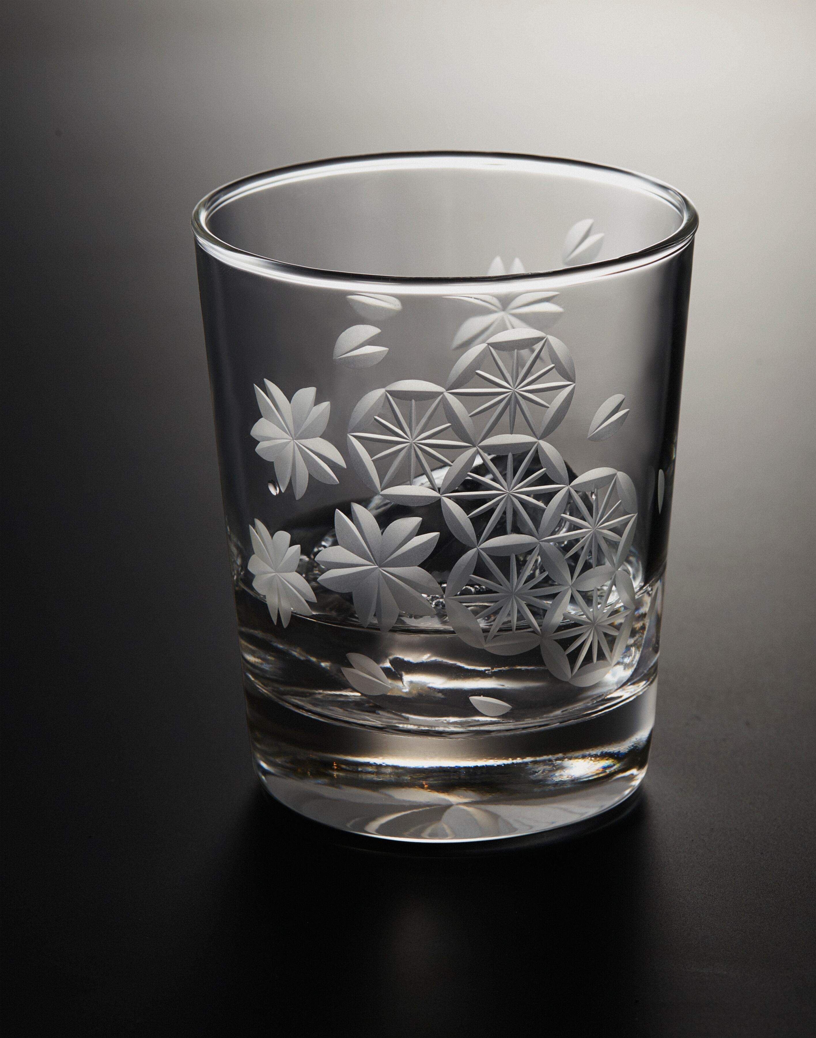 「縁起グラス」東京切子(花切子)ロックグラス 菊亀甲 桜宴 ~きくきっこう さくらうたげ~
