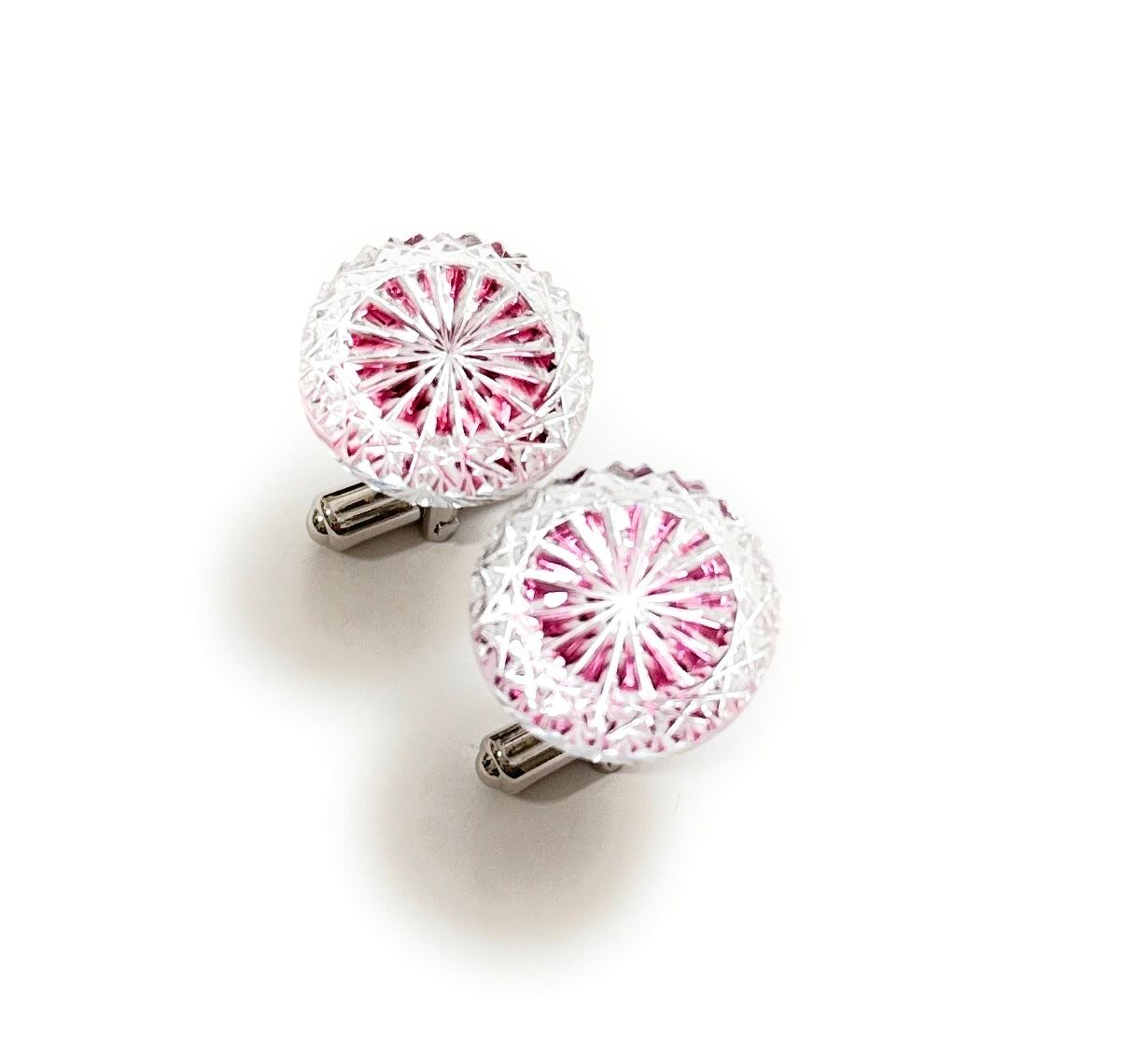 「煌めく希望・成功」東京切子カフスボタン18 輝煌 ~きこう~ ライト金赤