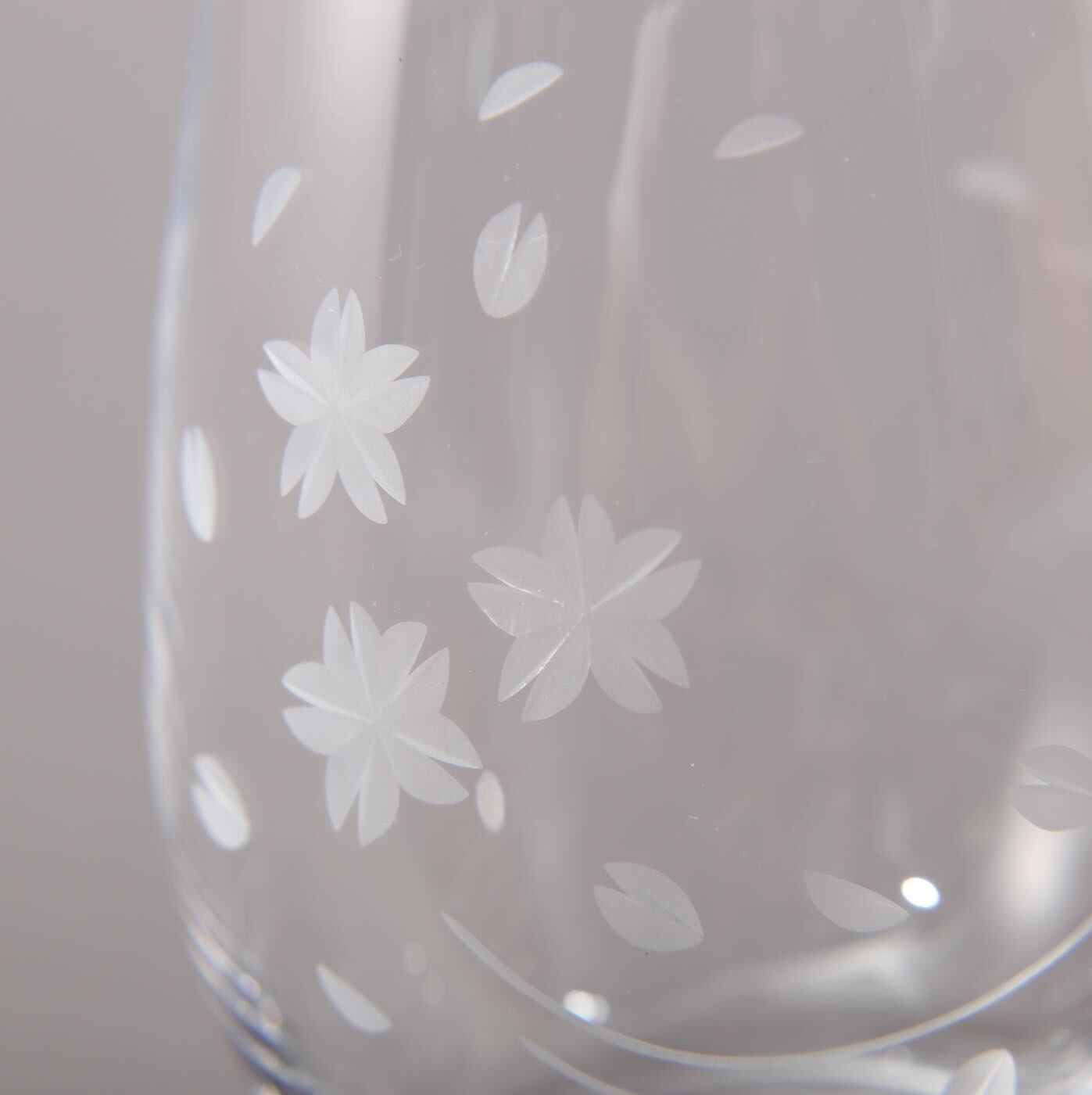 美しいフォルムのグラスに、流れる桜を彫り込みました。
