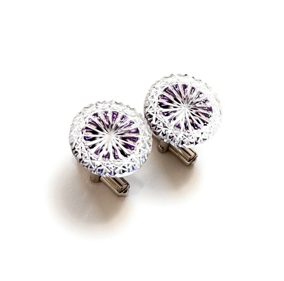 「煌めく希望・成功」東京切子カフスボタン18 輝煌 ~きこう~ パープル