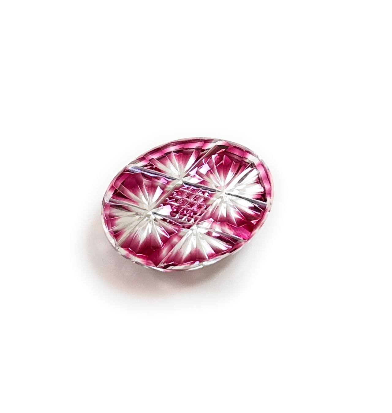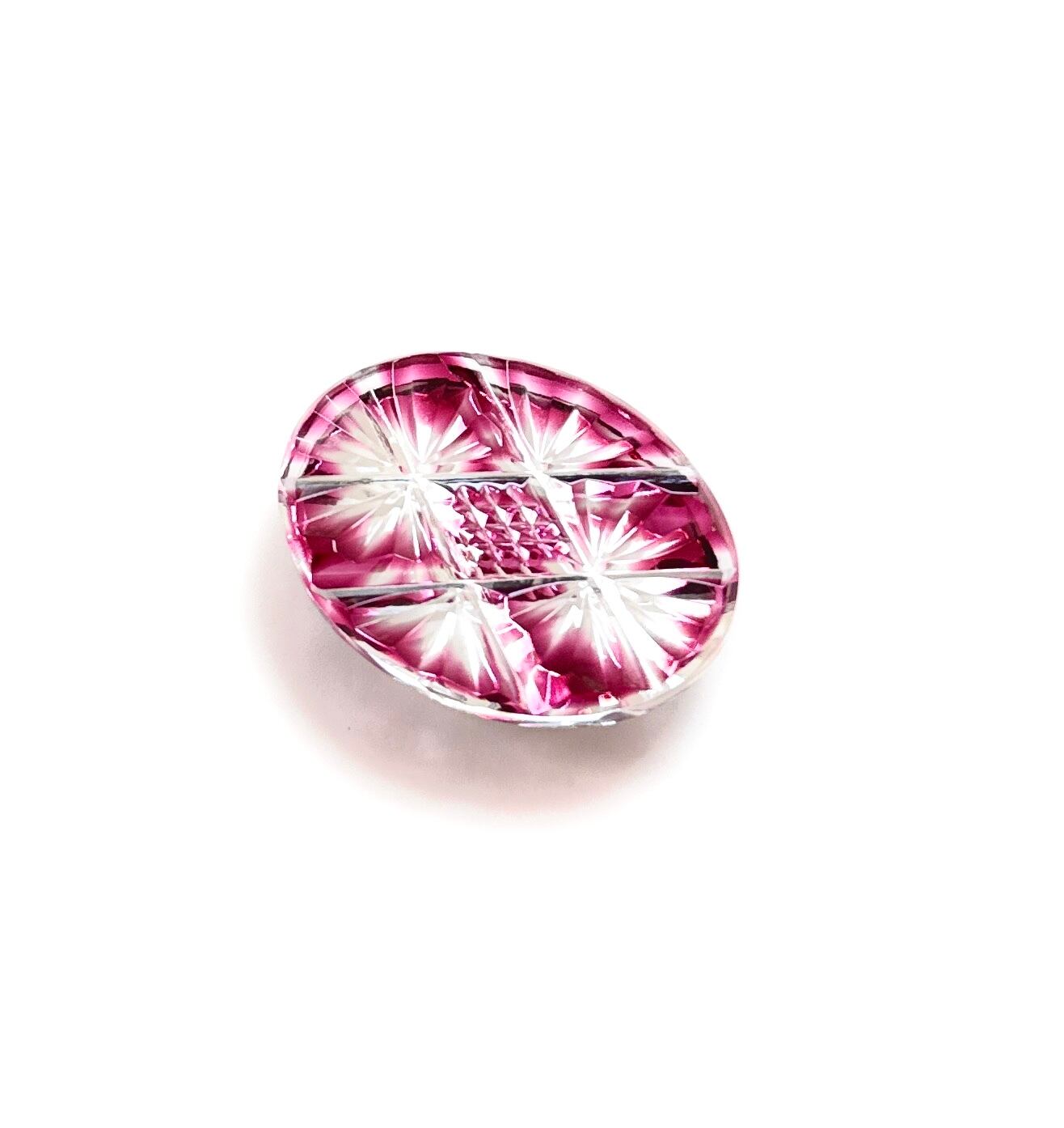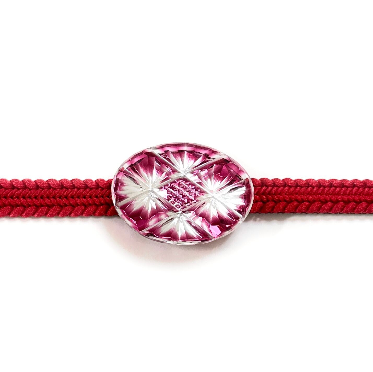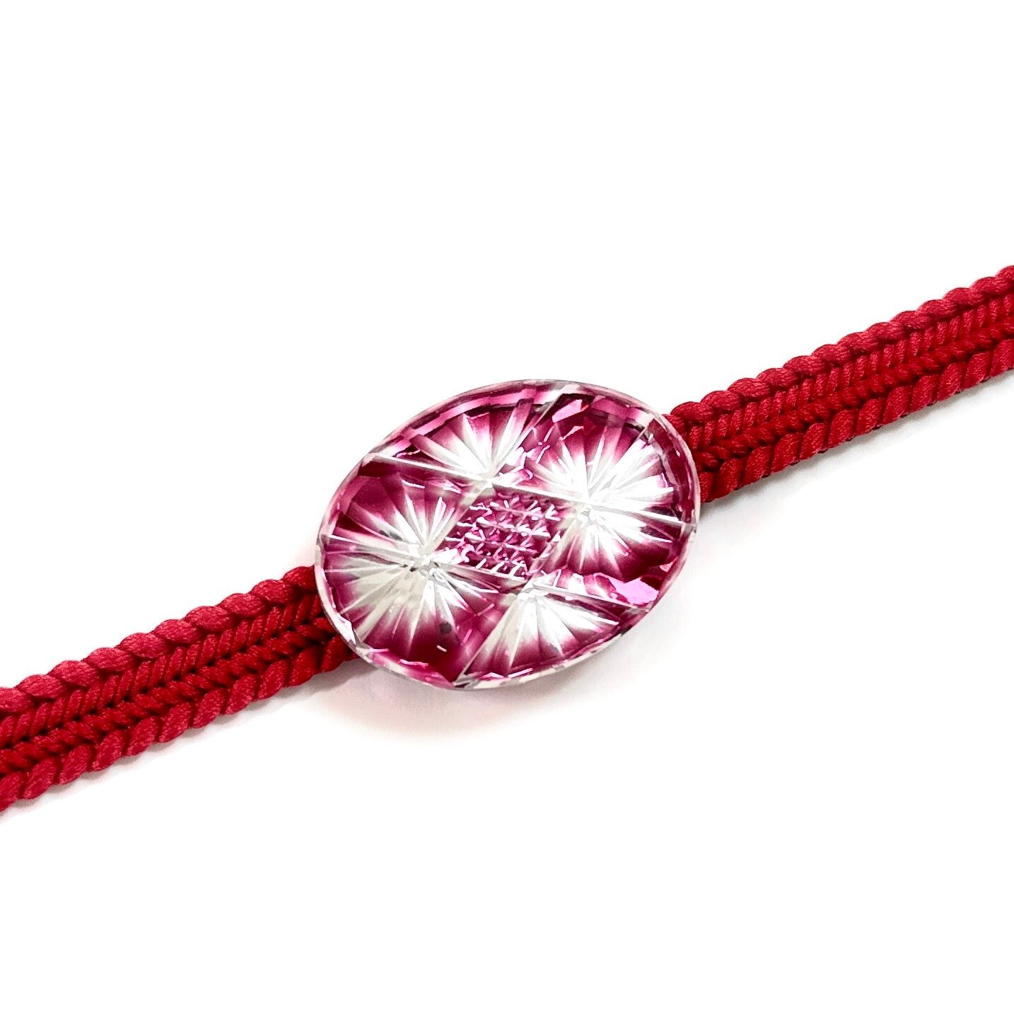 「家系の繁栄・幸福」東京切子帯留 三枚笹 ライト金赤