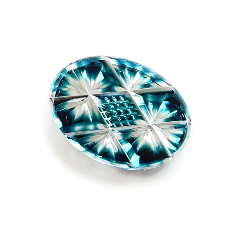 「家系の繁栄・幸福」東京切子帯留 三枚笹 ダークブルー