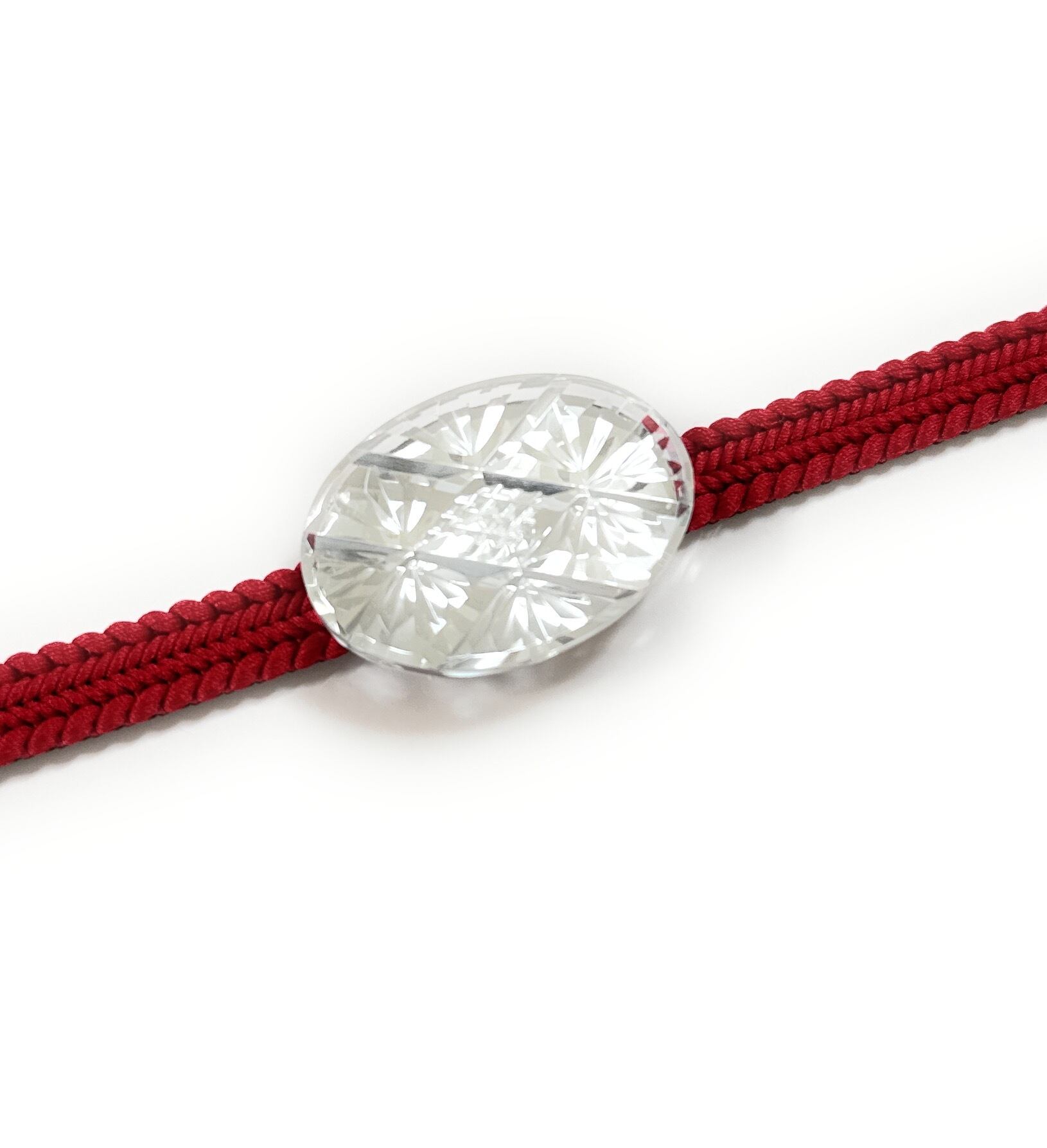 「家系の繁栄・幸福」東京切子帯留 三枚笹 クリアー