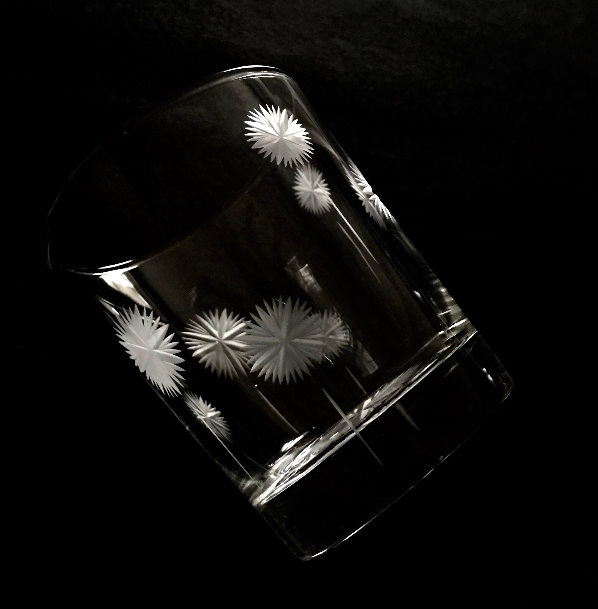 グラスの素材は通常の高級切子グラスに採用されているようなクリスタルではなく、型抜きの生地を採用しております。型抜きならではの、生地のゆがみ・気泡がある場合がございます。 高級切子グラスをご希望の際はお問い合わせ下さい。(お値段は上昇し割れやすくなります。)