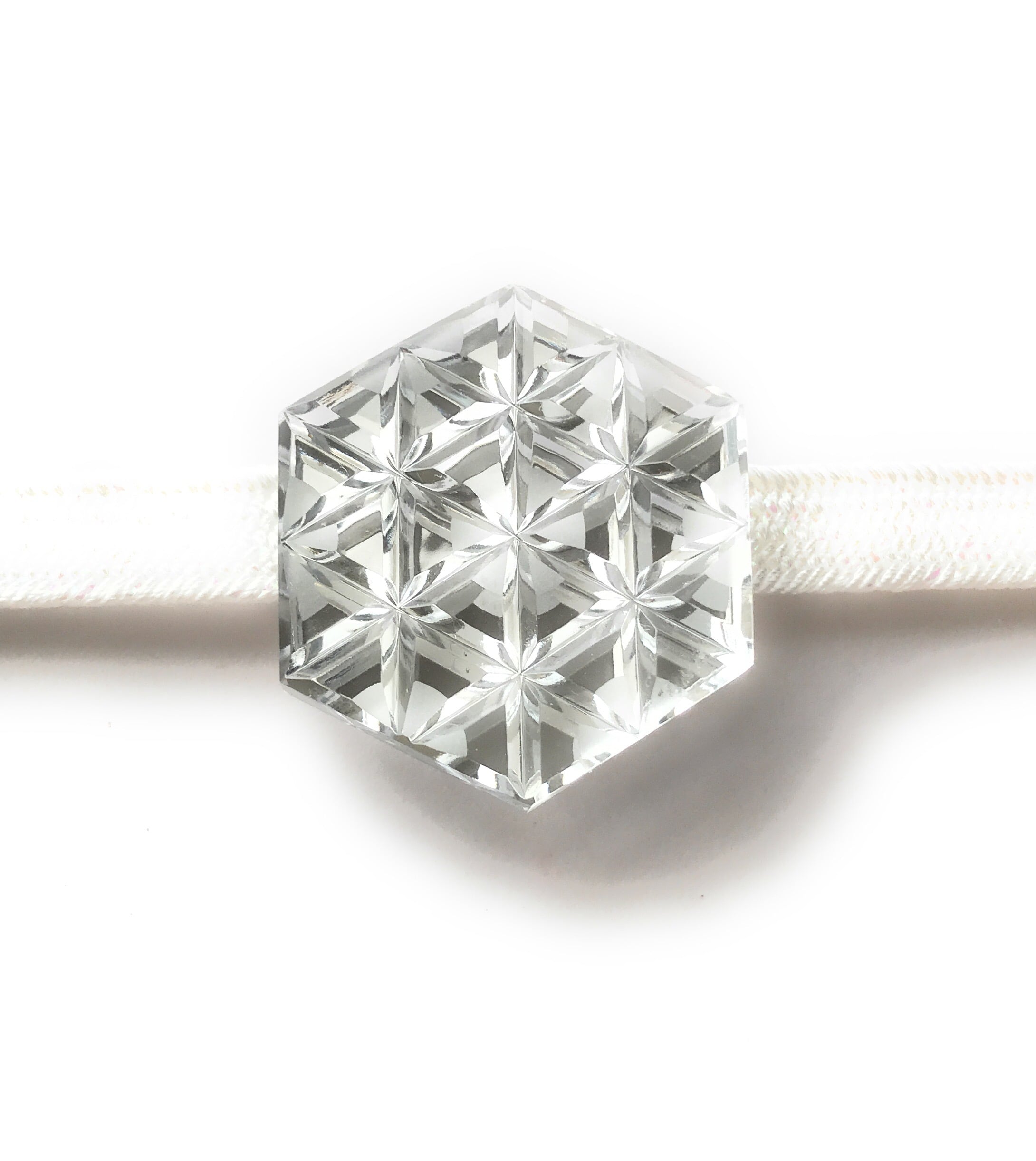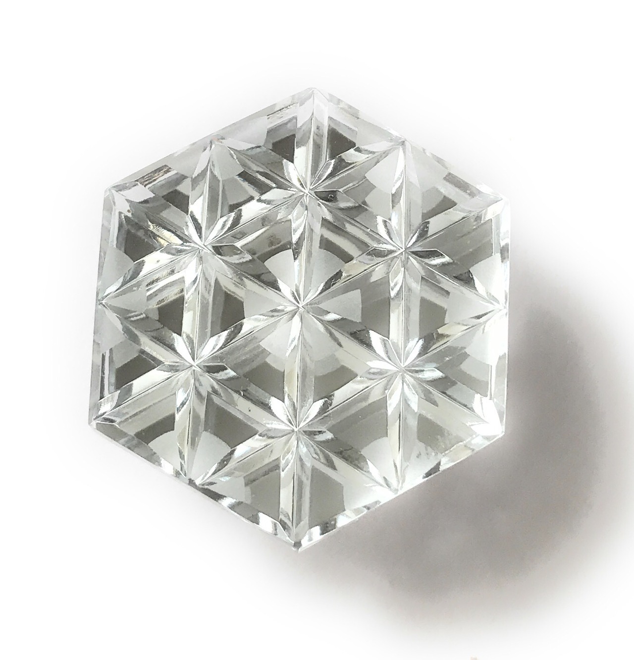 「光と反射」によってカットが広がって見えるばかりでなく、宝石のような立体感とガラスの美しい透明感があいまって、とても素敵な帯留めが出来上がりました。