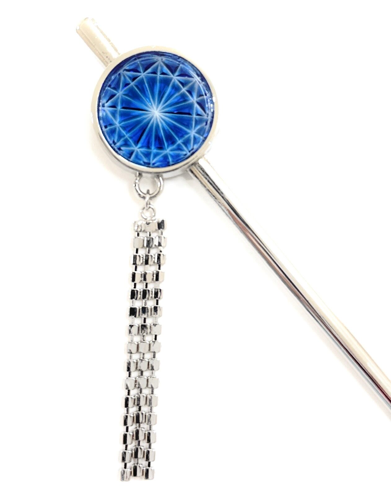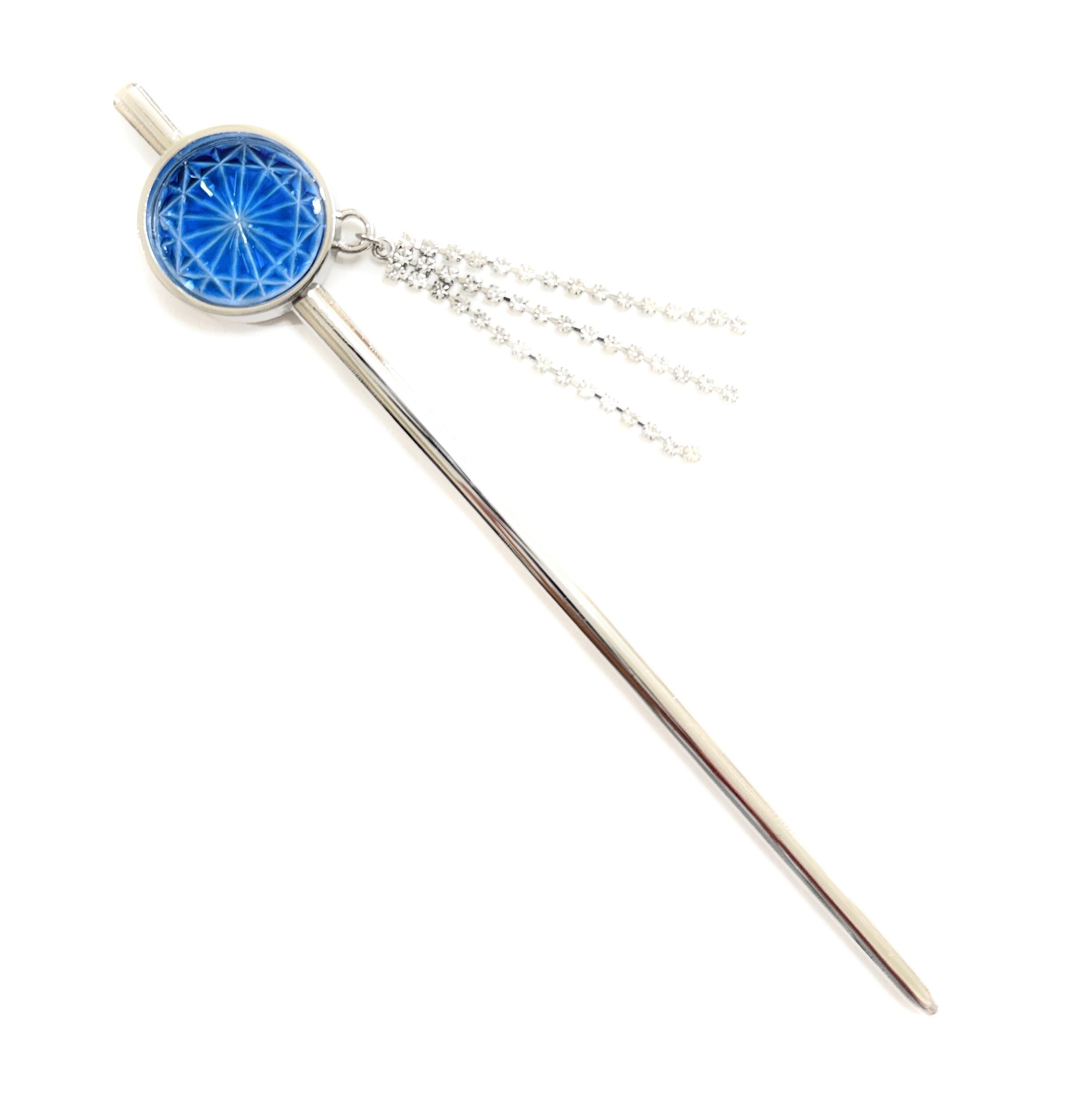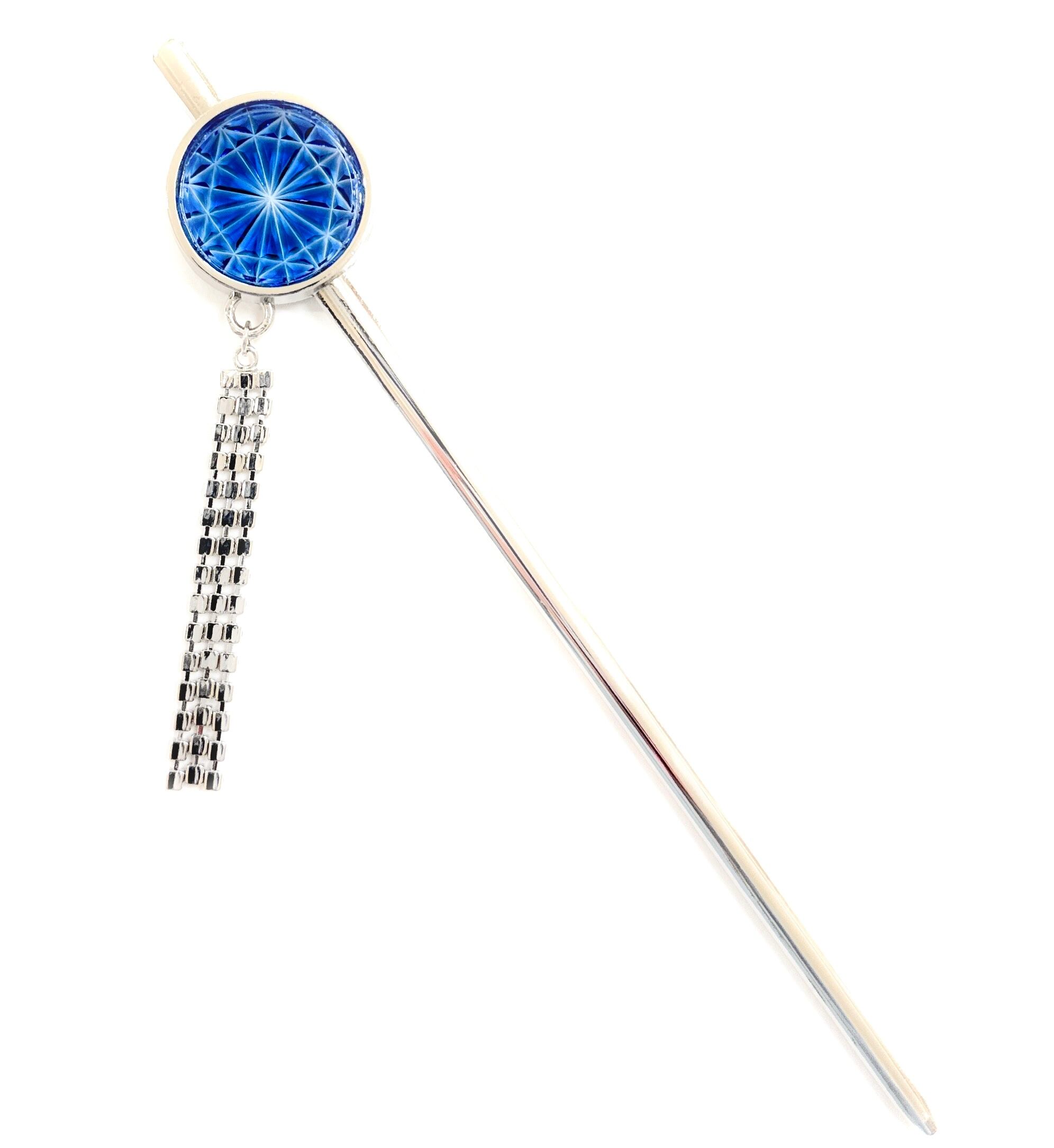 「美しく・永遠に輝く存在」 東京切子かんざし 青 金赤 タッセル