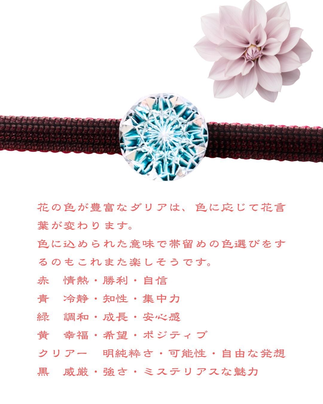 色に込められた意味で、帯留めのお色選びをするのもこれまた楽しそうです。