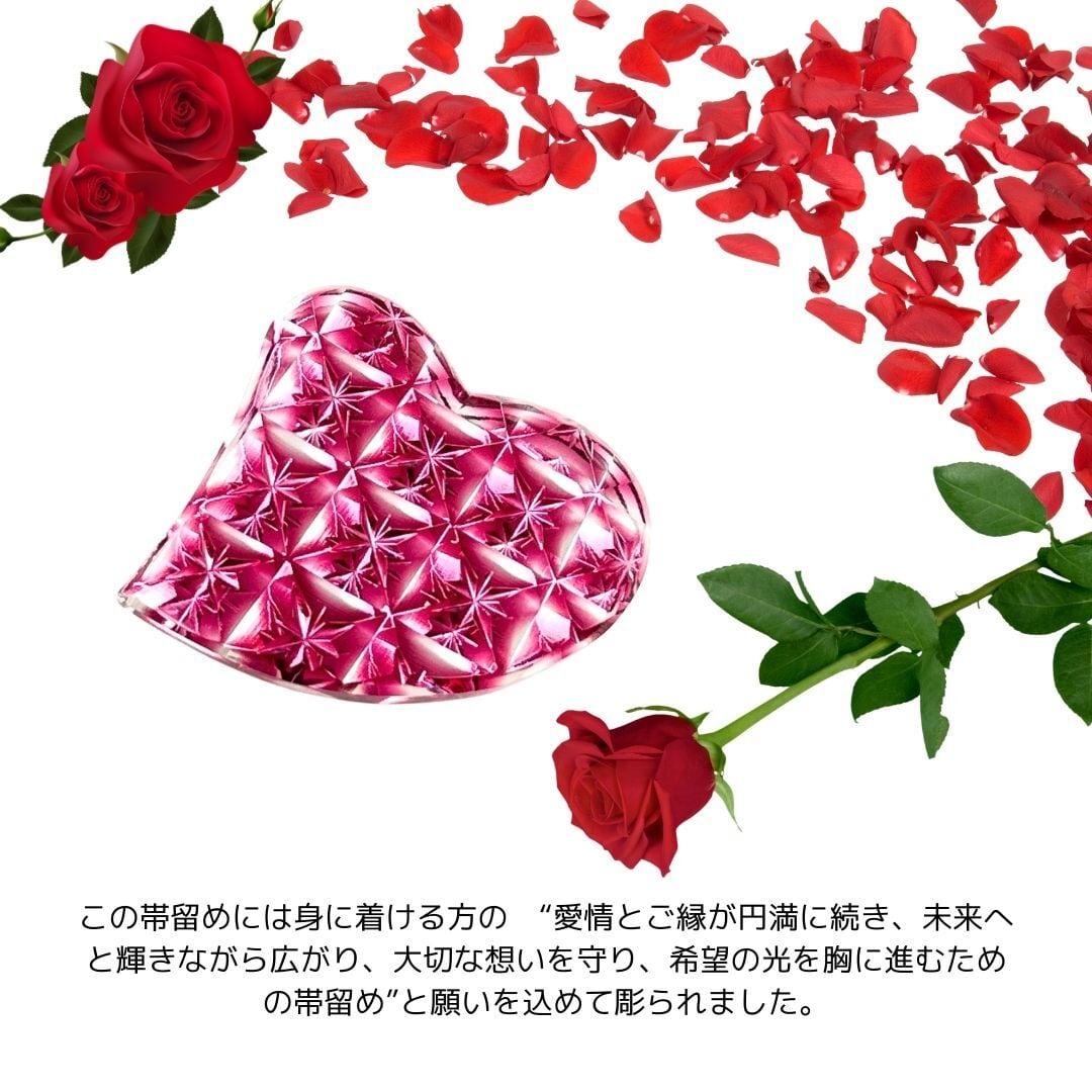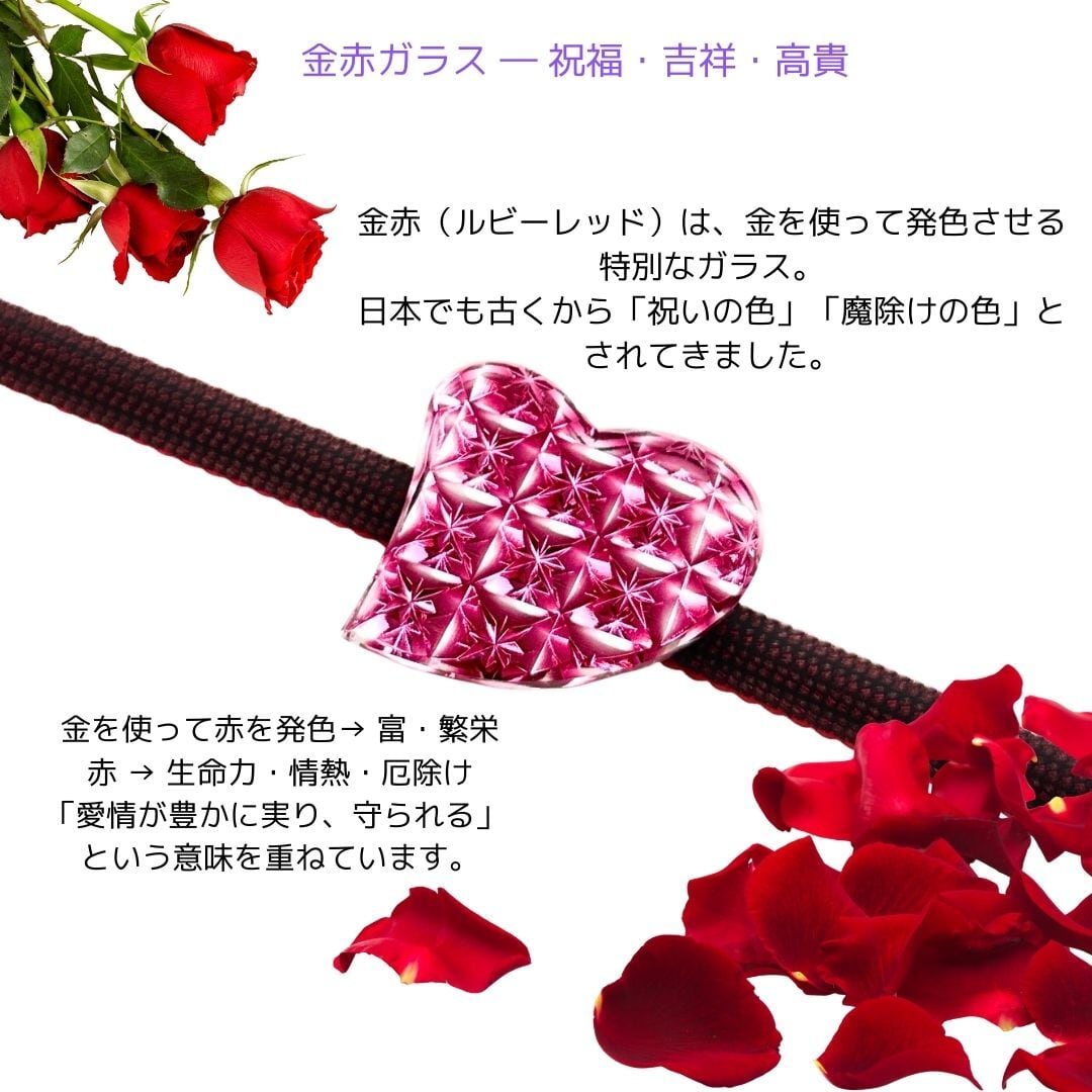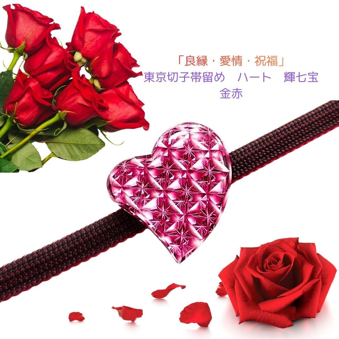 「良縁・愛情・祝福」東京切子帯留め ハート 輝七宝 金赤