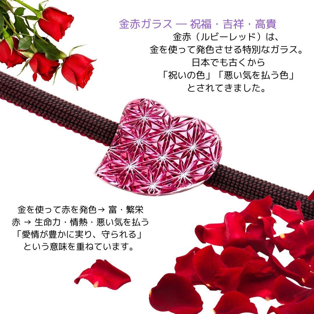 「あなたを大切に想う・未来への力強い成長・良縁」東京切子帯留め ハート 千代紙 金赤