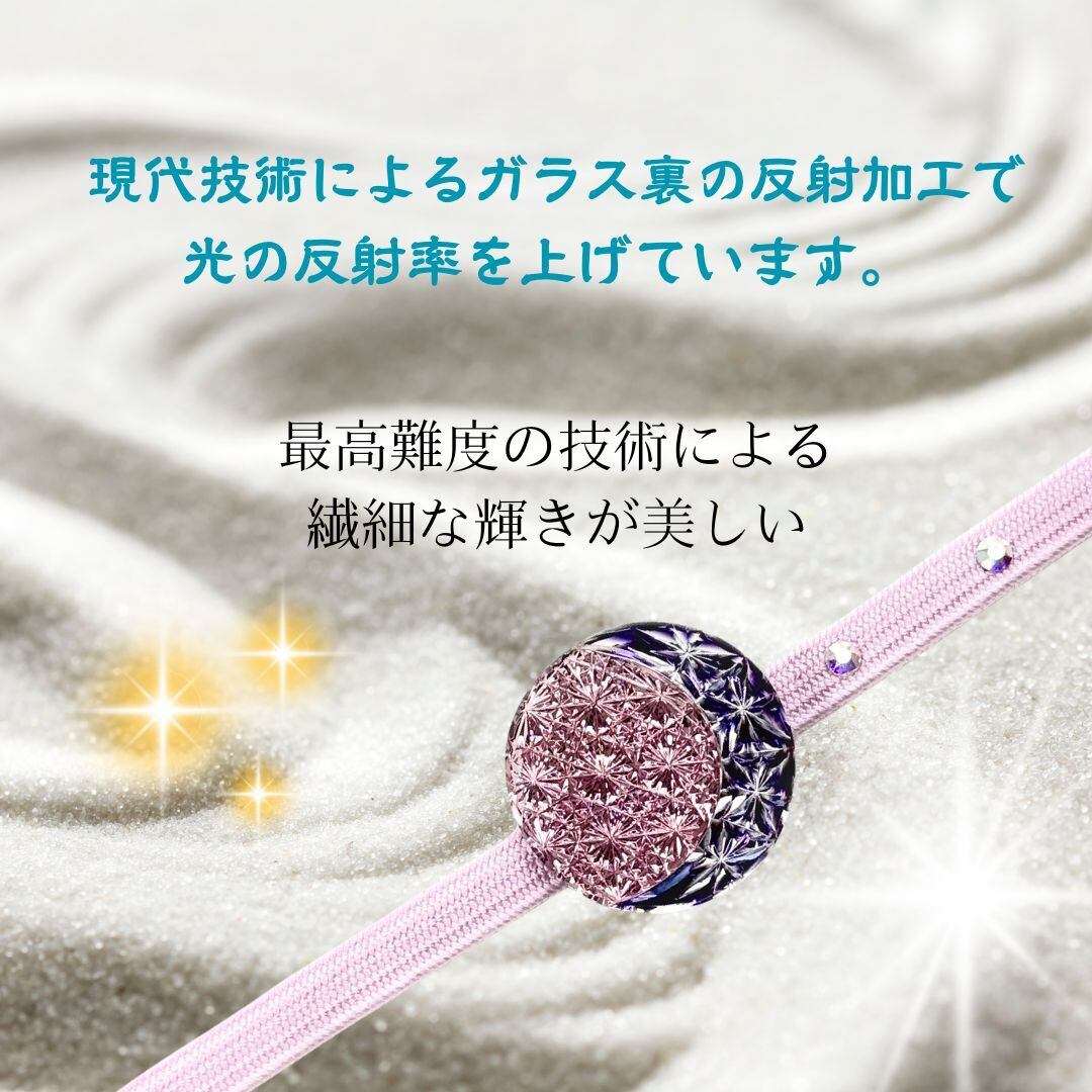 紫のガラスに彫られた麻乃葉の繰り返し模様は、無限の可能性や永遠の繁栄を象徴すると謂れているそうです。