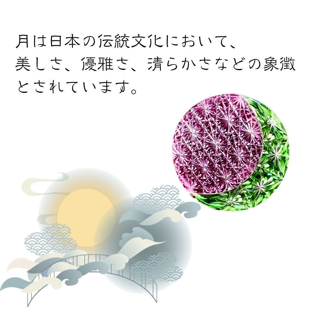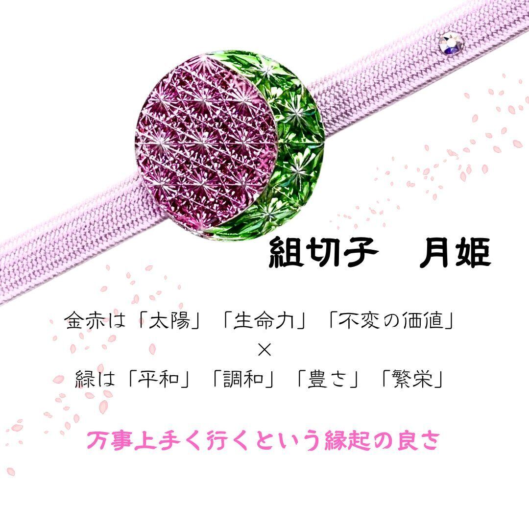 「万事如意」東京切子帯留め 組切子 月姫 金赤・グリーン