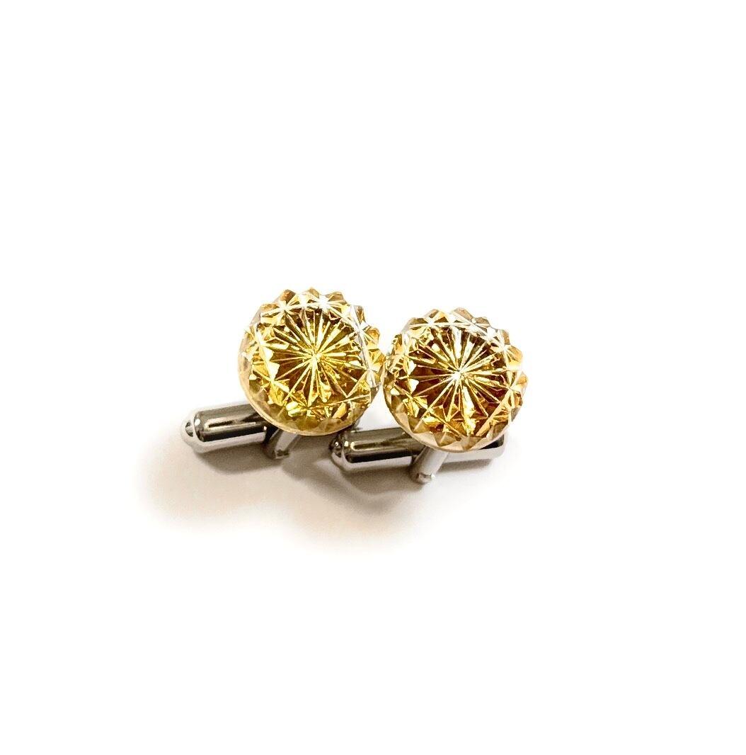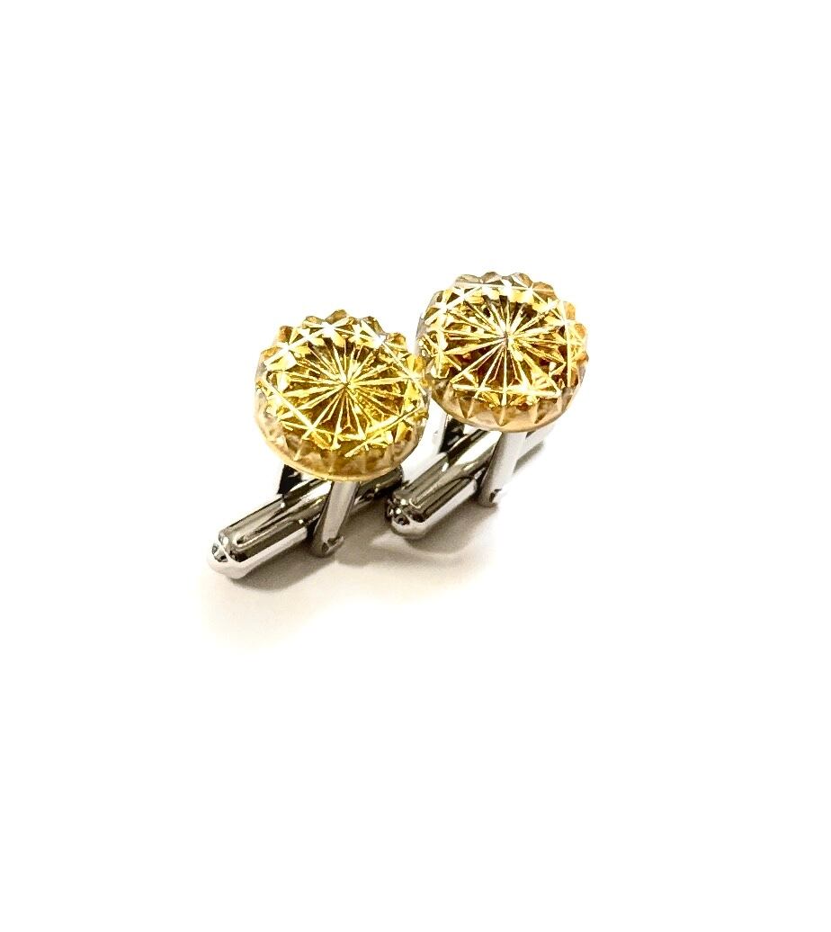 東京切子カフスボタン 菊 アンバー