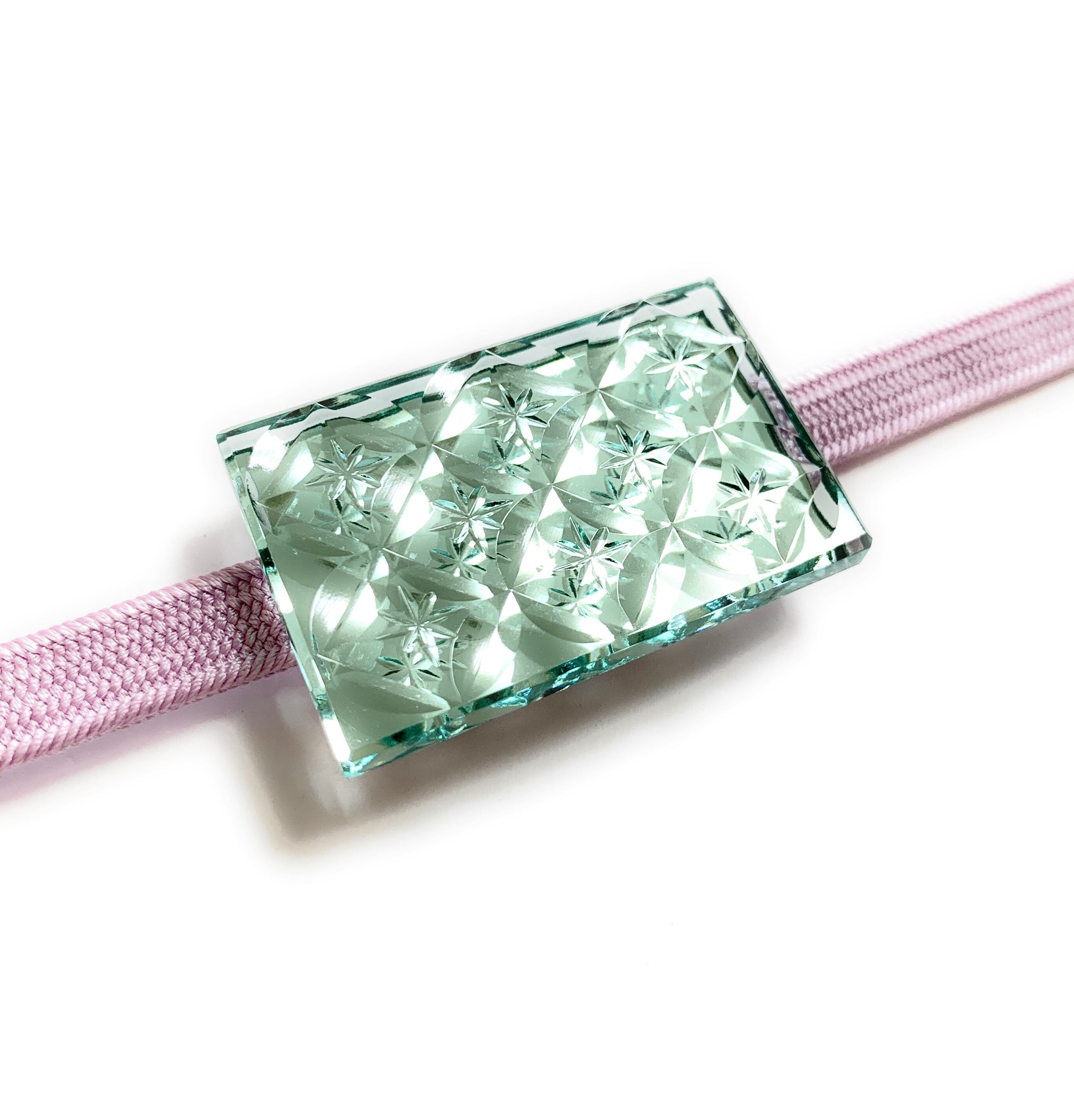 東京切子帯留め Rectangle 輝七宝~かがやきしっぽう~(華) スパークリンググリーン