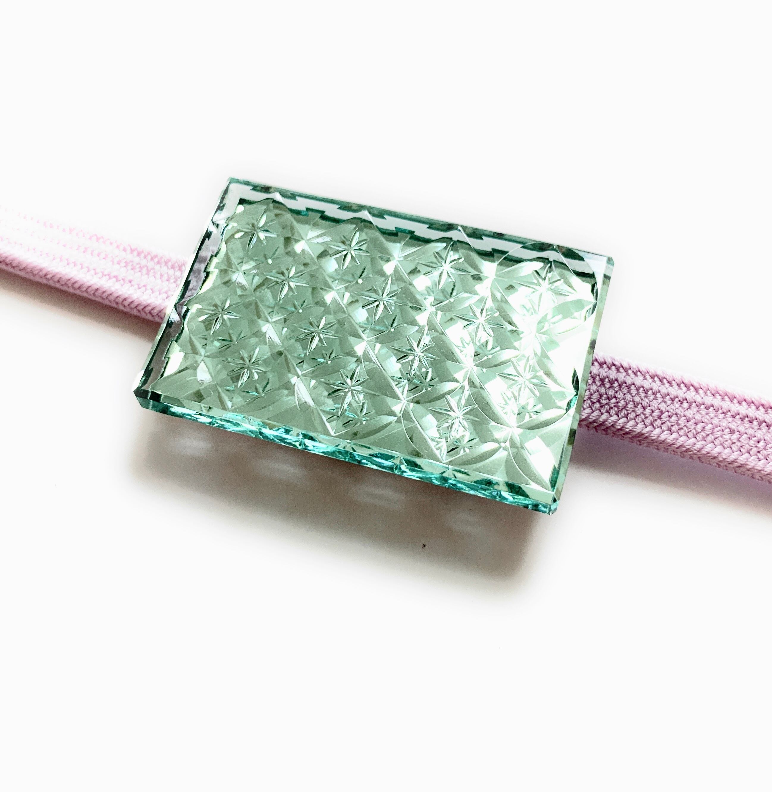 東京切子帯留め Rectangle 輝七宝~かがやきしっぽう~(可憐) スパークリンググリーン