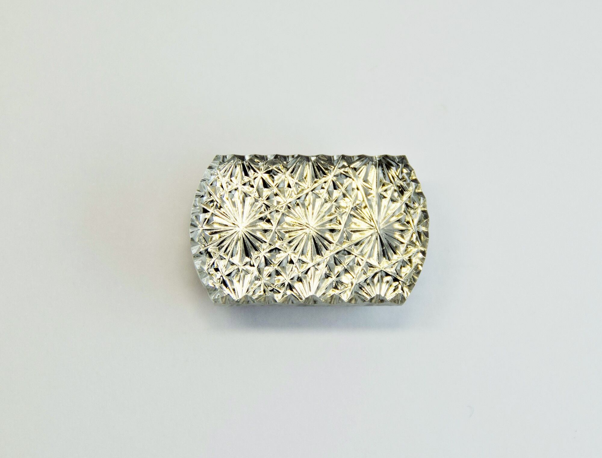 ガラスの素材は、透明度の高いクリアーなガラスの生地をひとつひとつ切り出して、熟練職人でも時間のかかる伝統柄の菊の切り子をあしらいました。