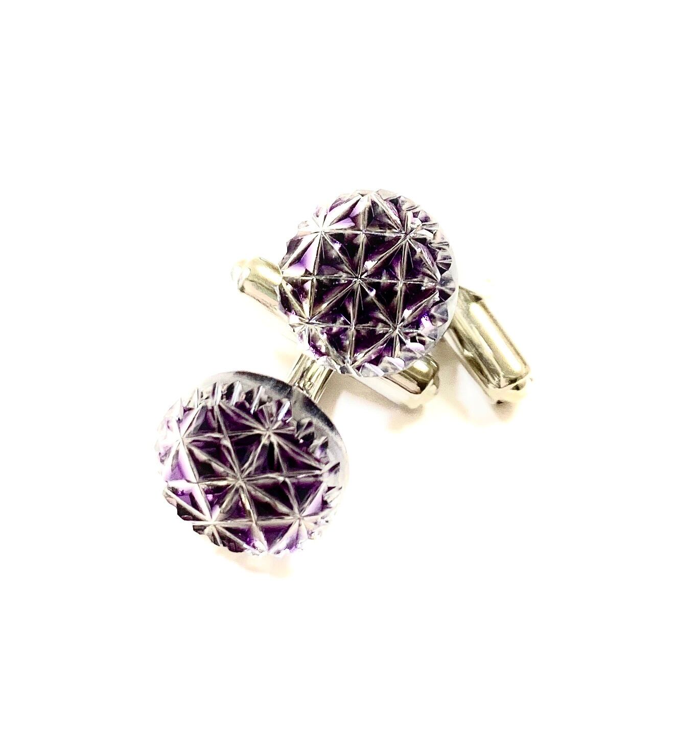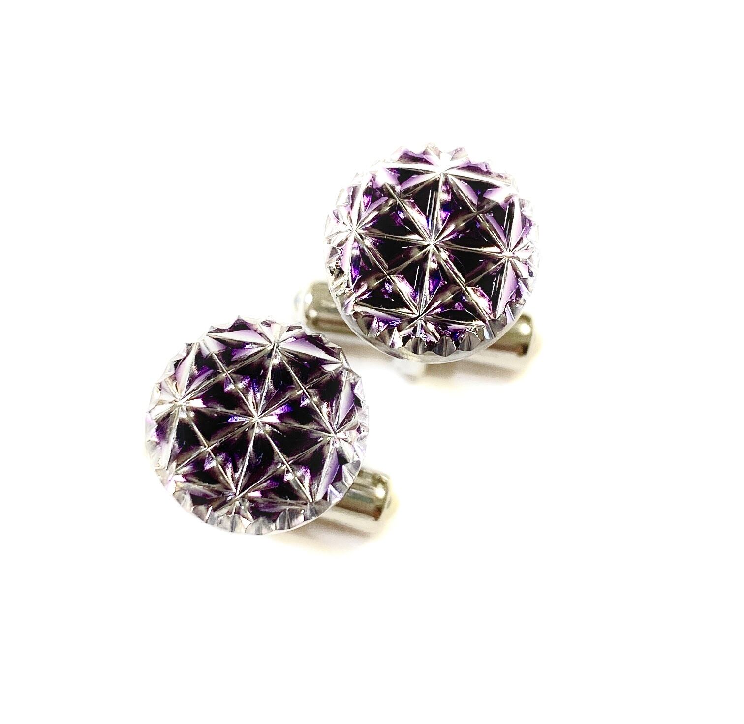 吹きガラス職人さんが手作りした、吹きガラスを小さく小さく切り出して、磨いて、パワーカットの麻の葉を彫り込みました。