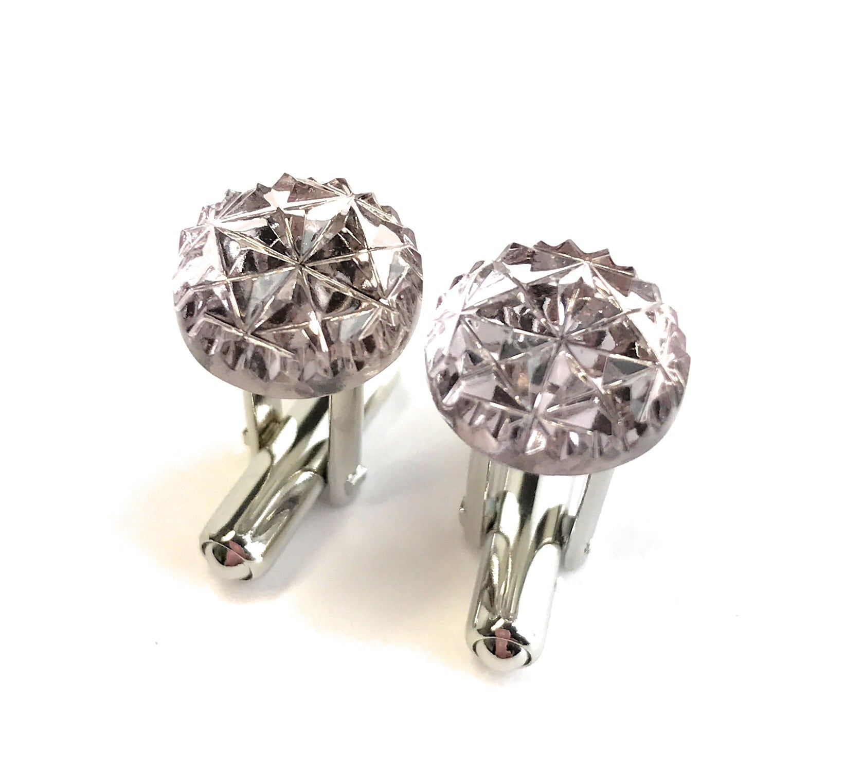 吹きガラス職人さんが手作りした、特注の吹きガラスを小さく小さく切り出して、磨いて、パワーカットの麻の葉を彫り込みました。