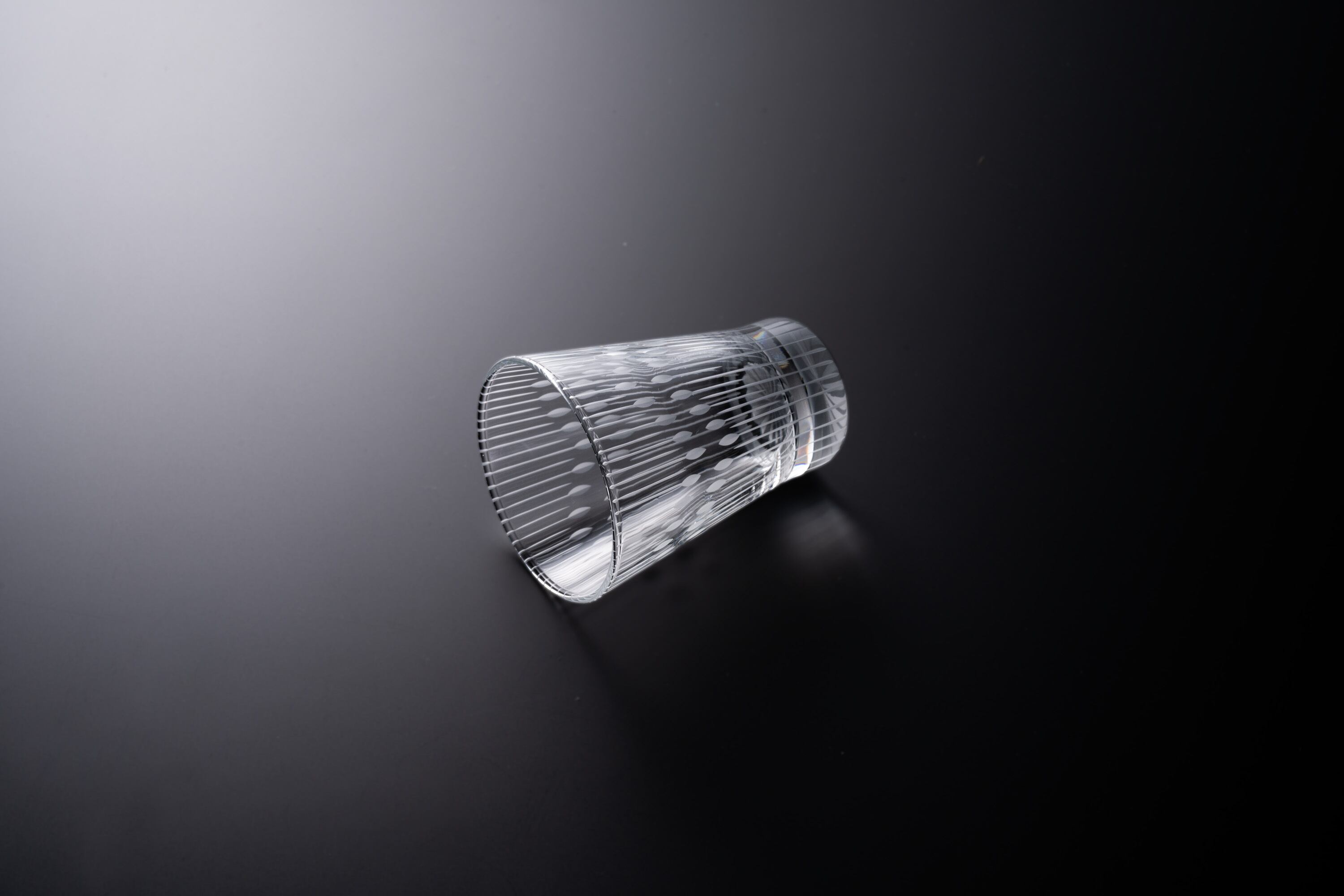 グラスを目の高さに持ってくると、手前と後ろのカットがぴたーっと一致する職人技の絶景を眺めながら、お酒をお楽しみ頂けます。