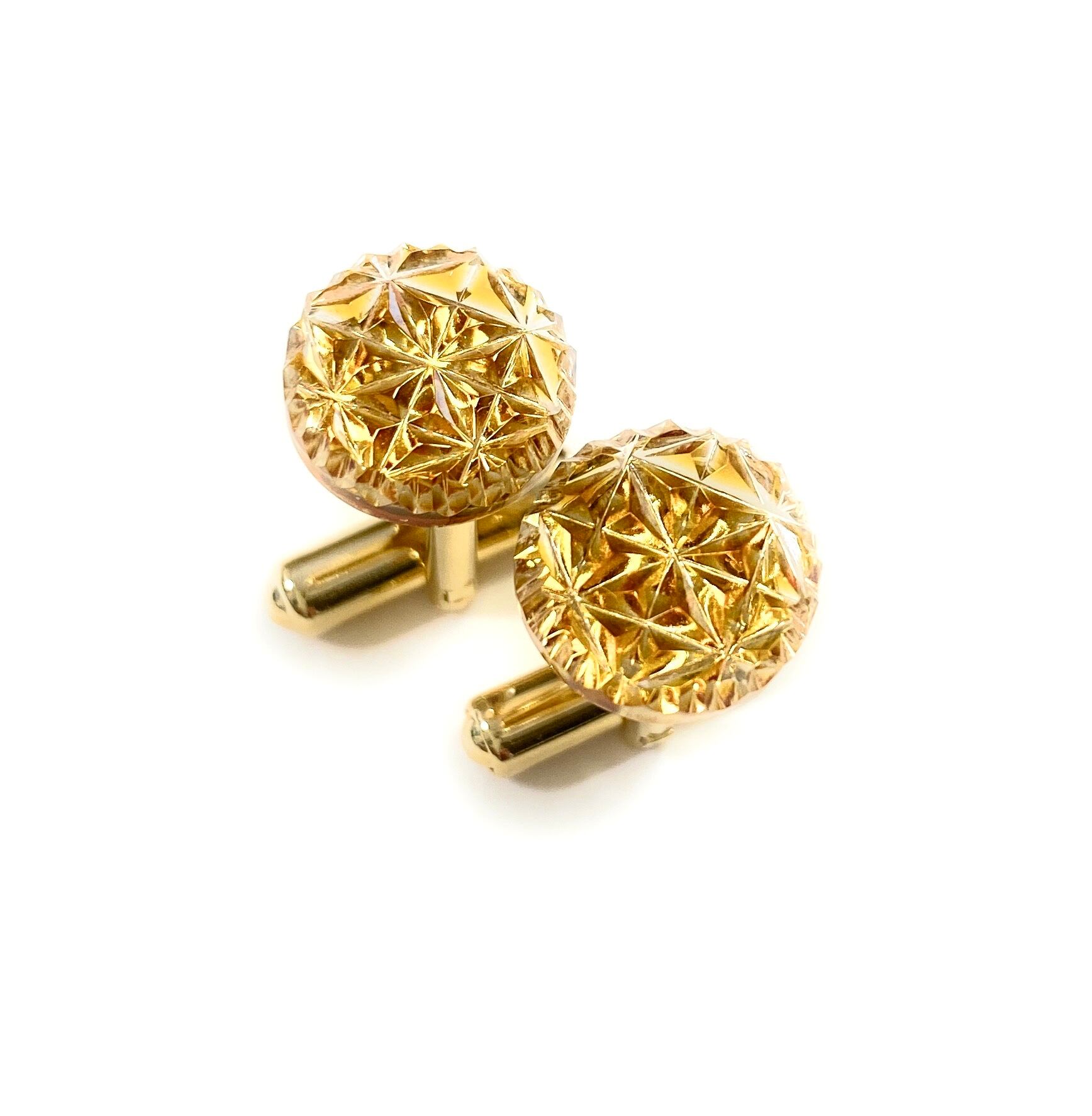東京切子カフスボタン 麻乃葉 アンバー・ゴールド