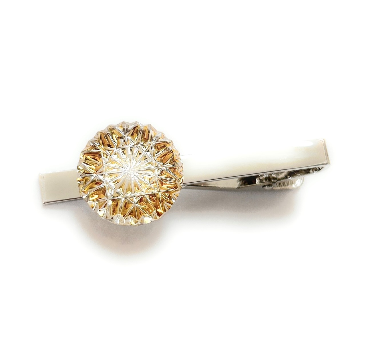 ネクタイピンはポーチに入り桐箱に収めて、ゴールドのリボンのついた白いオーガンジーのサシェでエレガントにラッピングしてお届け致します。