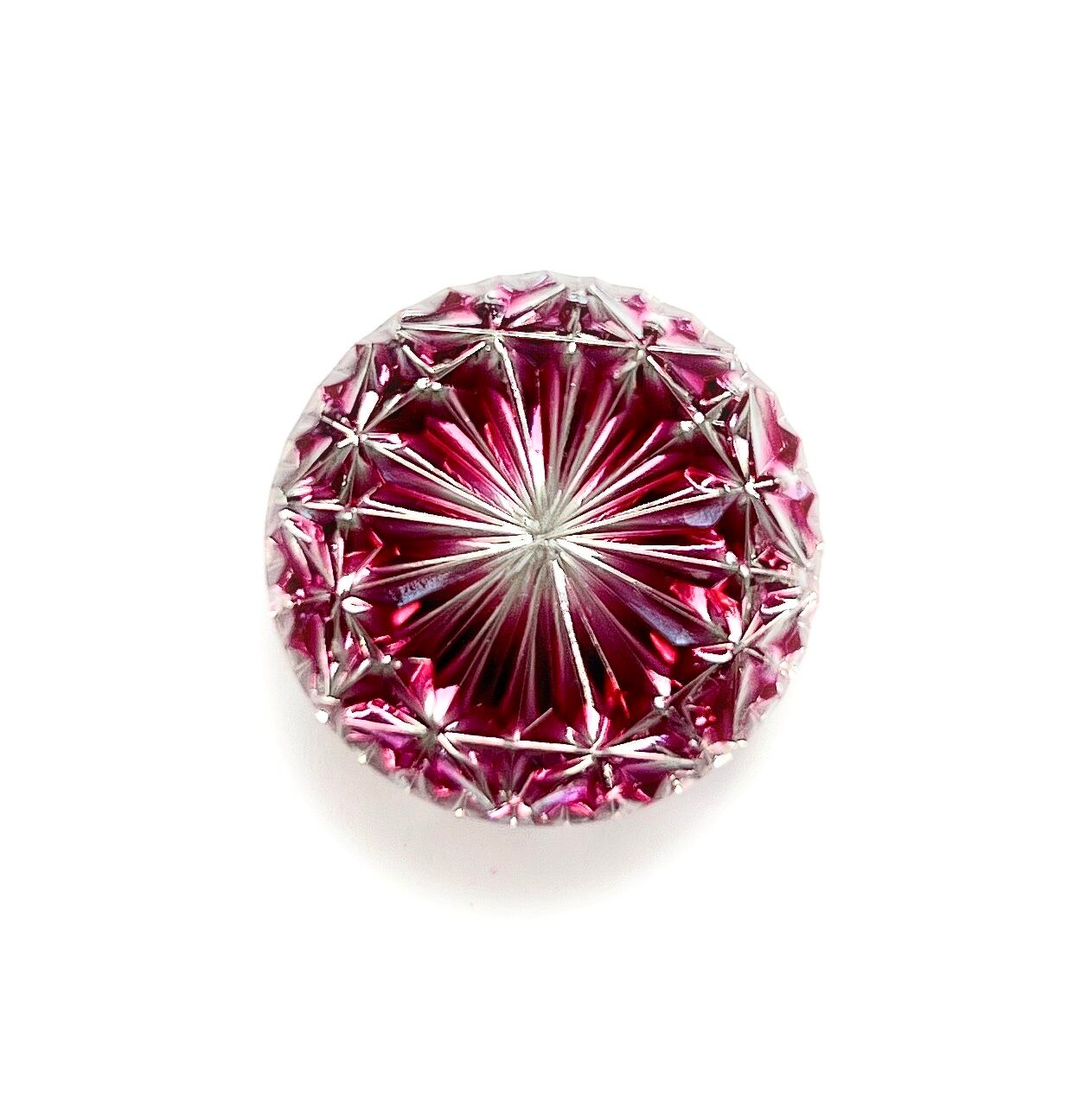 ガラスの素材は、吹きガラス職人さんが色被せガラスで生地を作り、その生地をひとつひとつ切り出して、シャープな菊の切子をあしらいました。