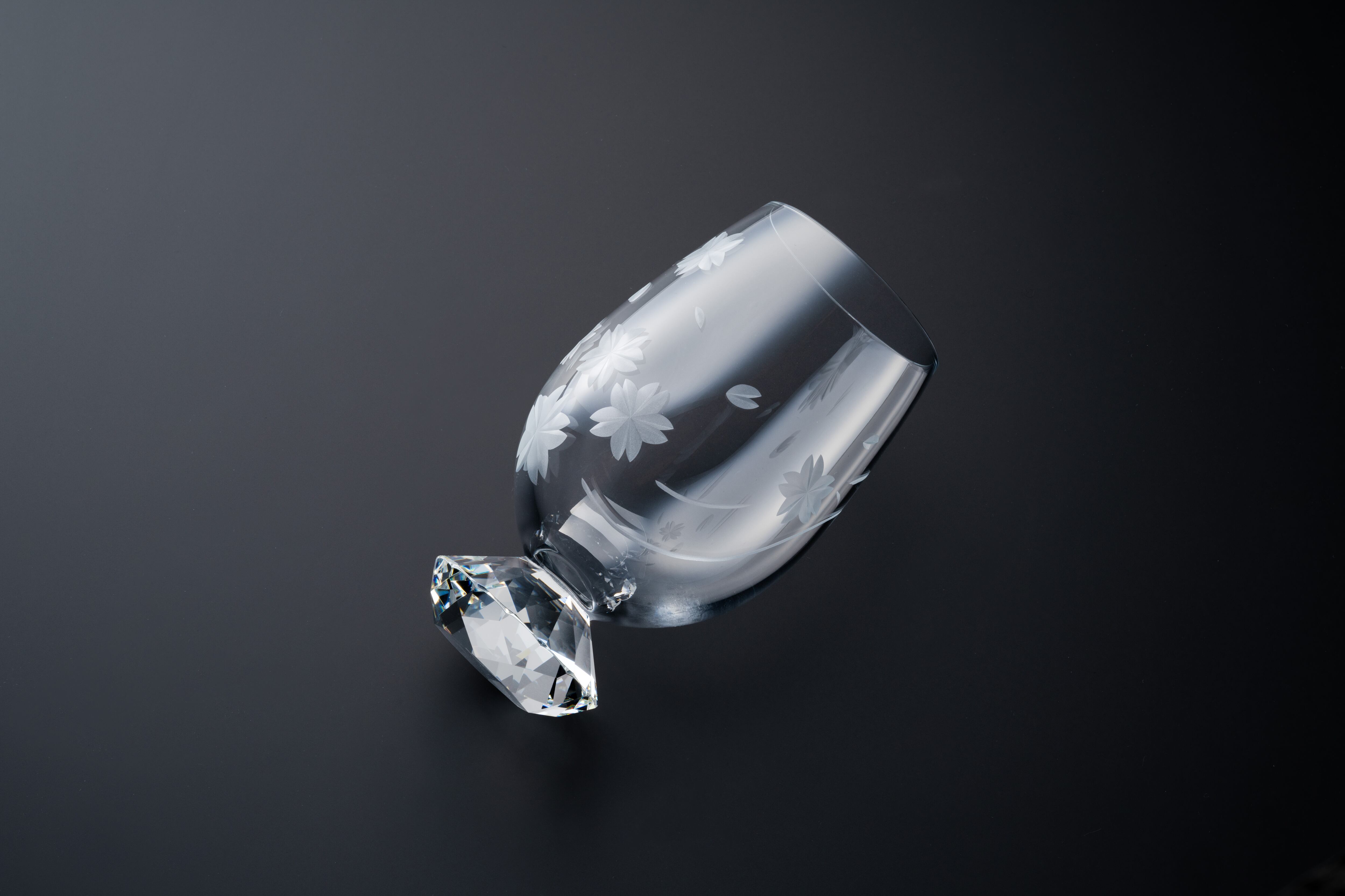 グラスの底のダイヤモンドカットがとても美しく、このグラスを傾けると、グラスを持っていない方からは、キラキラ輝いているダイヤモンドで飲み物を召し上がっているかのように見えます。