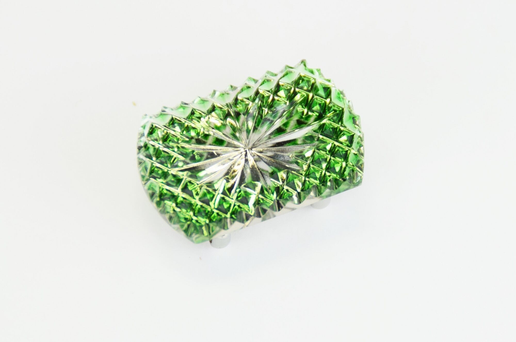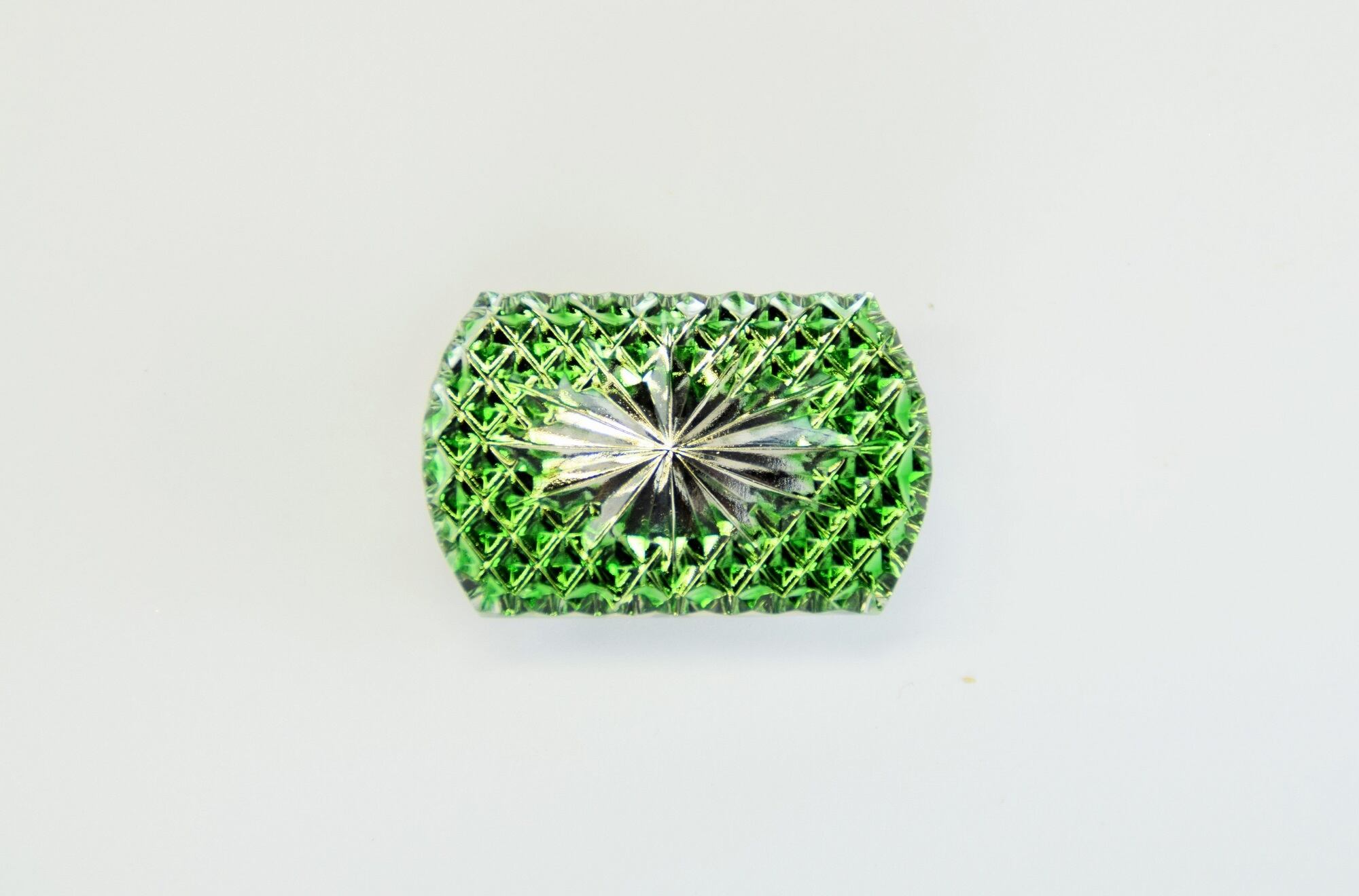東京切子帯留め 光更紗 緑