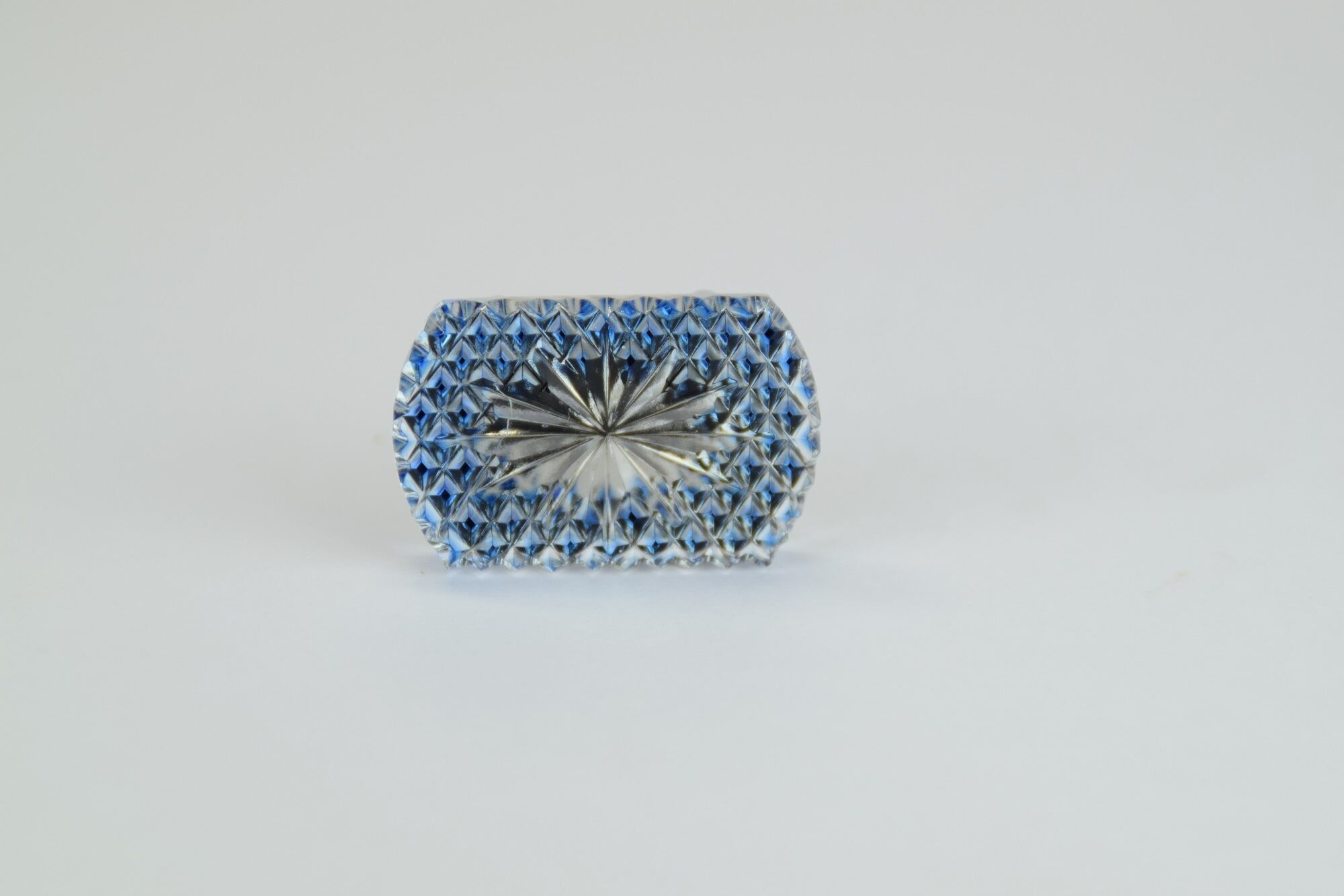 ガラスの素材は、吹きガラス職人さんが色被せガラスで生地を作り、その生地をひとつひとつ切り出して、キラキラ反射面が多い魚子の切子をあしらいました。