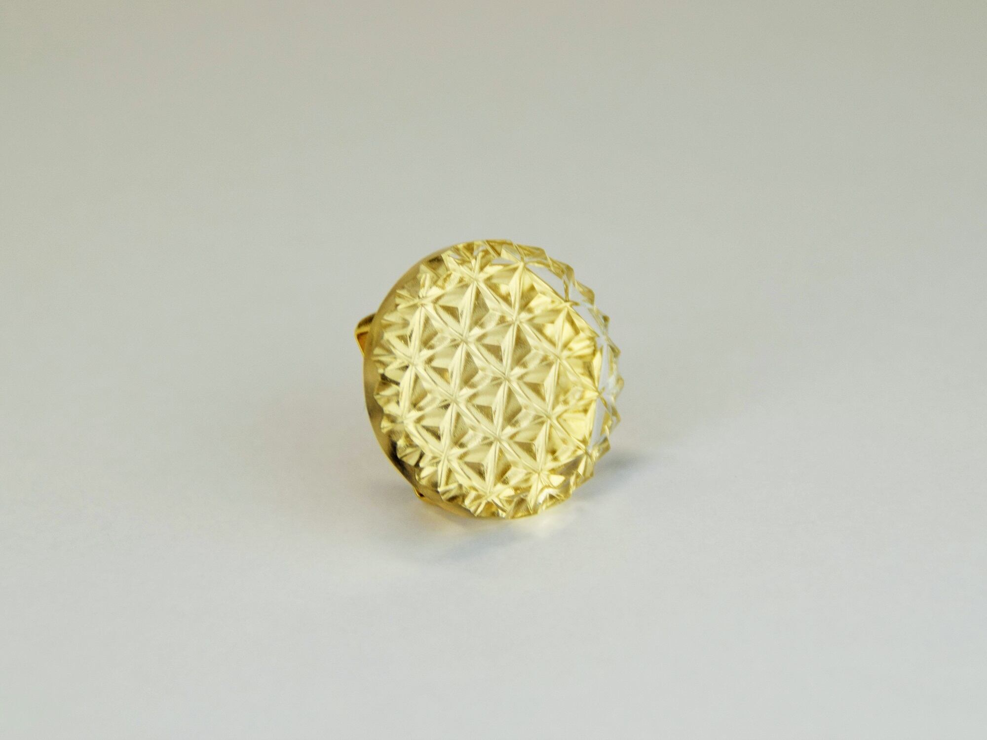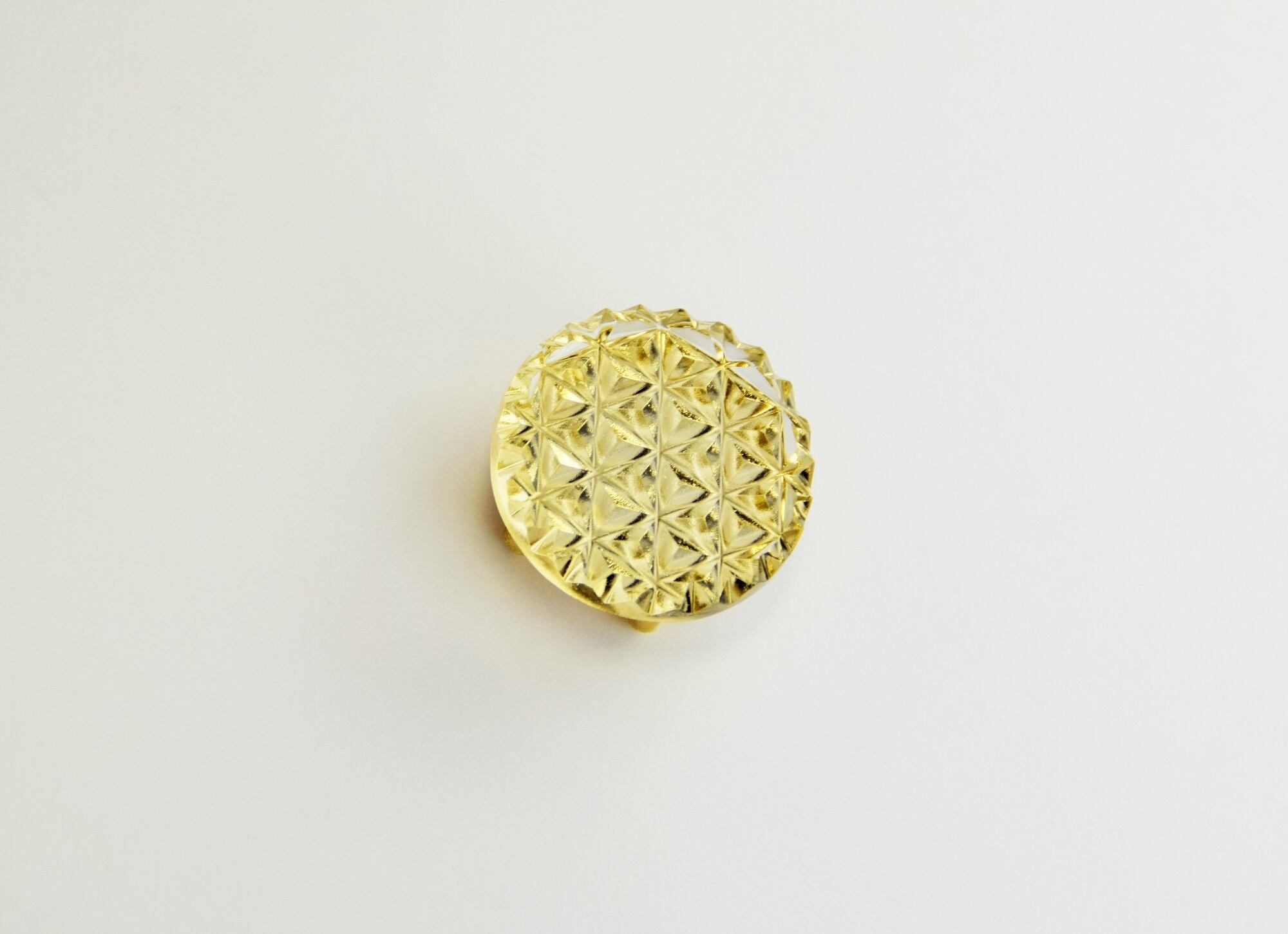 東京切子帯留め 丸 麻乃葉六角 クリアーゴールド