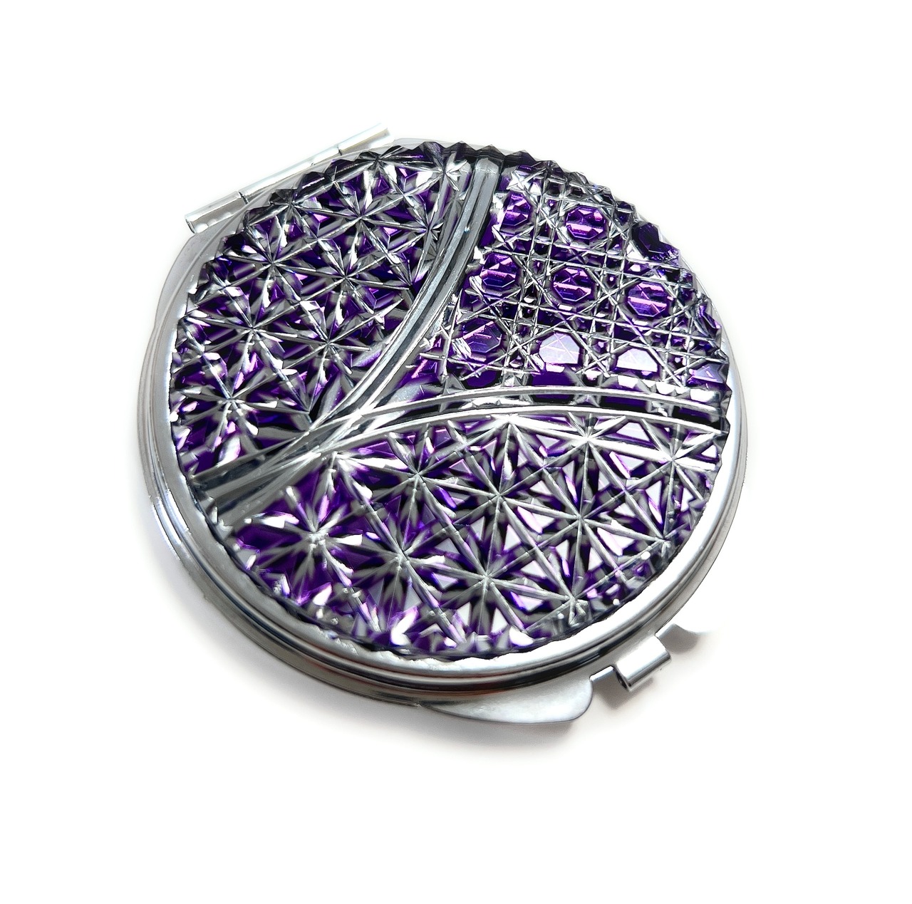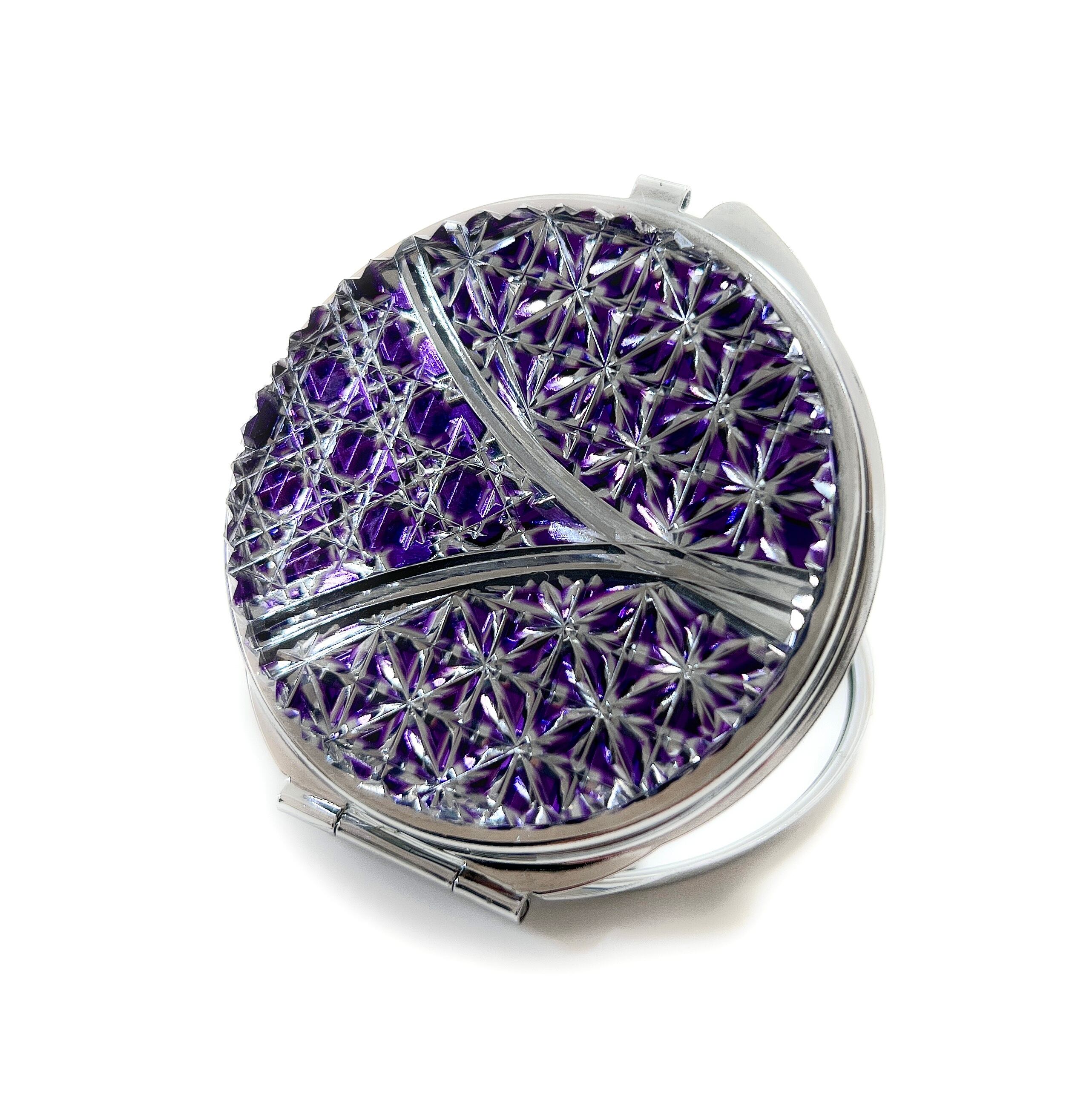 東京切子コンパクトミラー 海神 ~わだつみ~ 紫 Silver