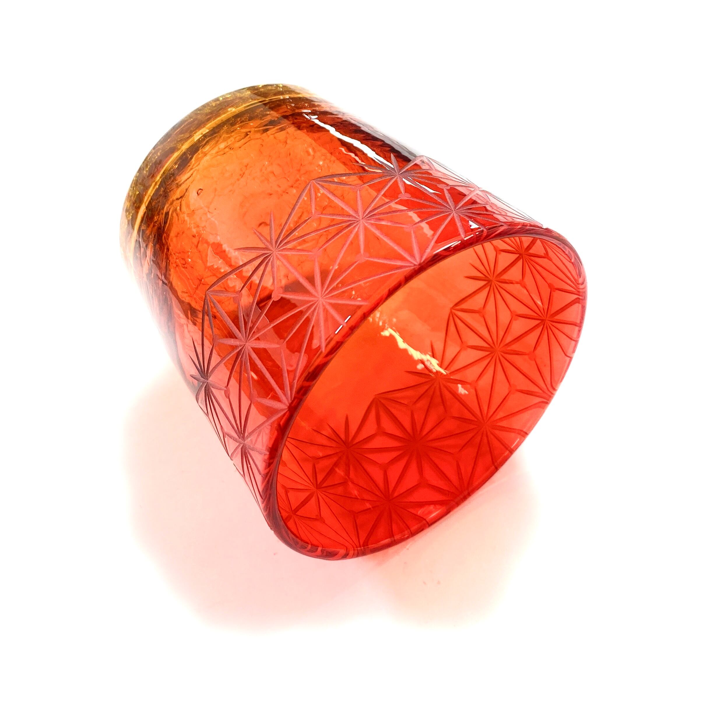 キラキラのクラッシュが少な目で、オレンジの部分が低い部分のみのグラスです。