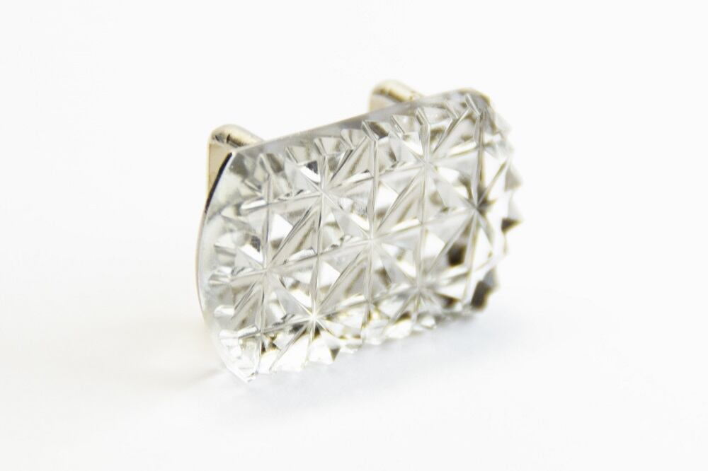 東京切子帯留め お太鼓 麻乃葉 クリアー