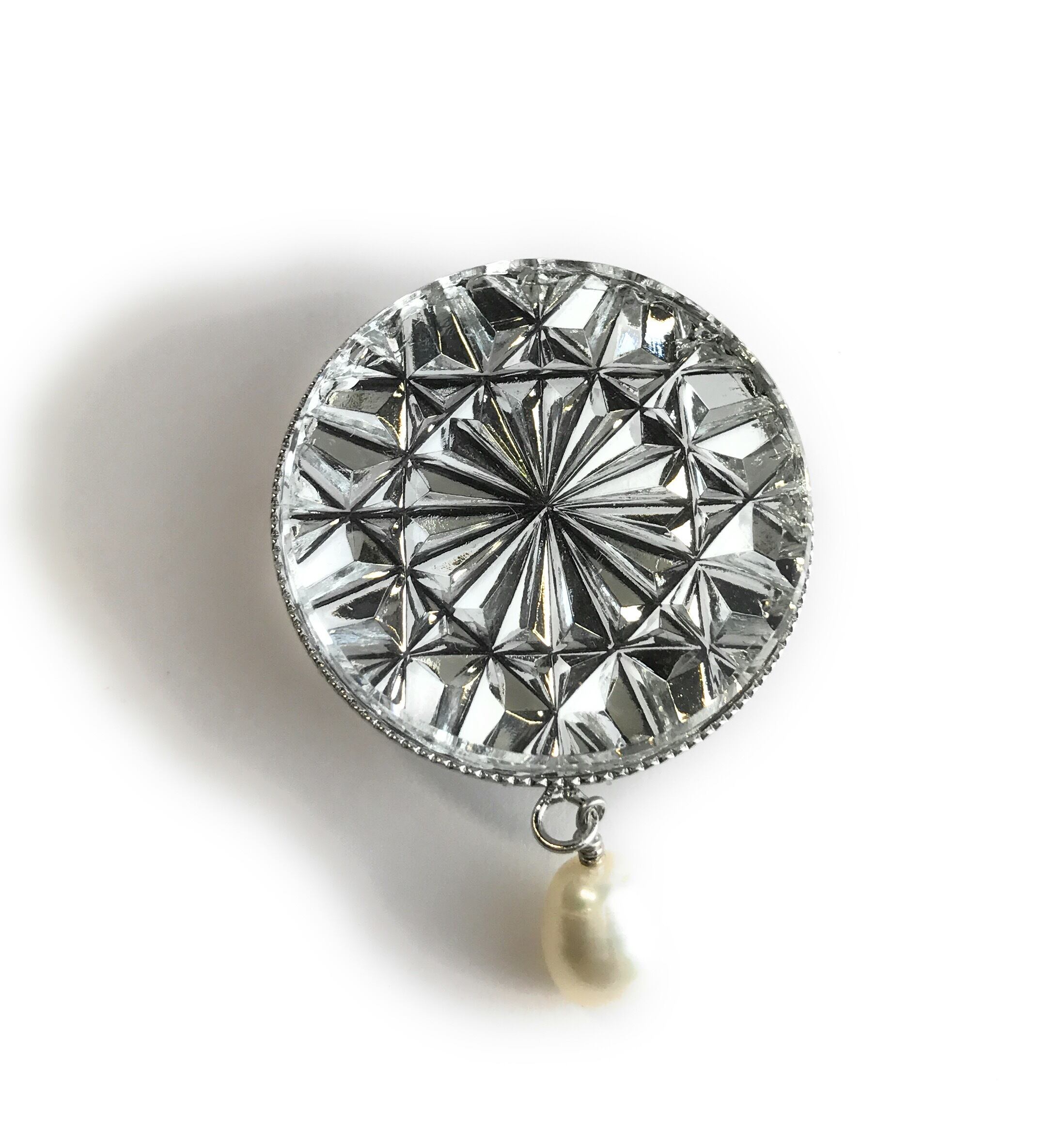 東京切子帯留め 菊姫(大)クリアー・ホワイトパール