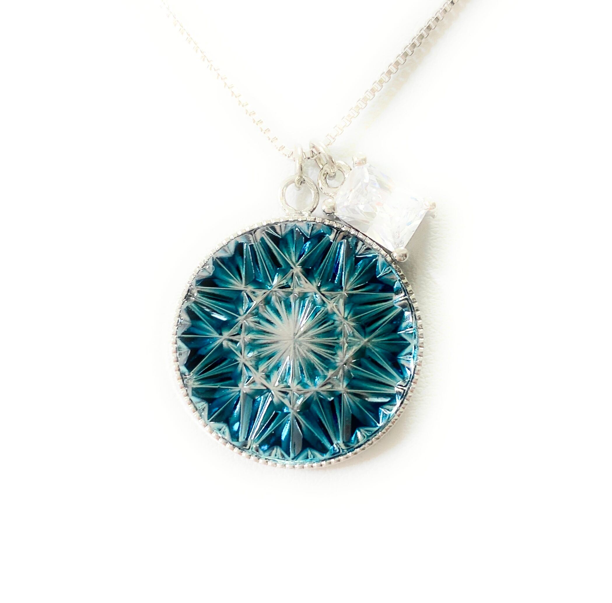 光と反射を入れ込んだ切子ガラスに、ジルコニアのキラキラが混じり、シンプルですがとても素敵なネックレスが出来上がりました。