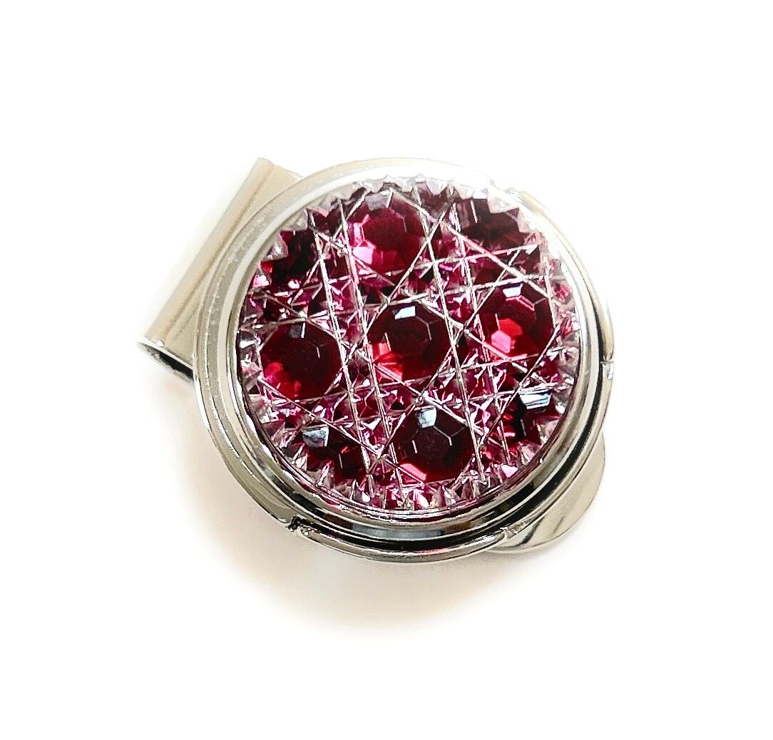 ガラスの裏に接着してある金物が光を反射させ、ガラスの中に光を取り込み、カットの反射が永遠に続いているかのように見えます。