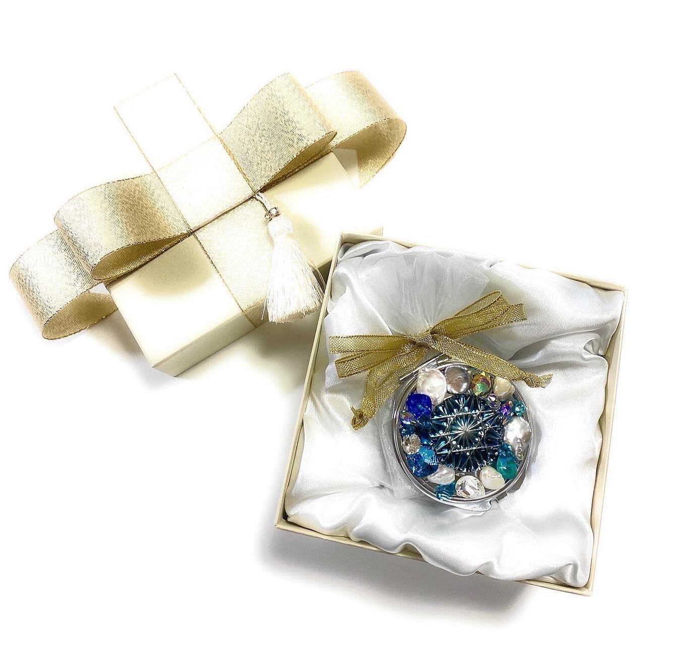 オーガンジーラッピング(ミラー本体)・タッセルボックス・ギフト用紙袋付。