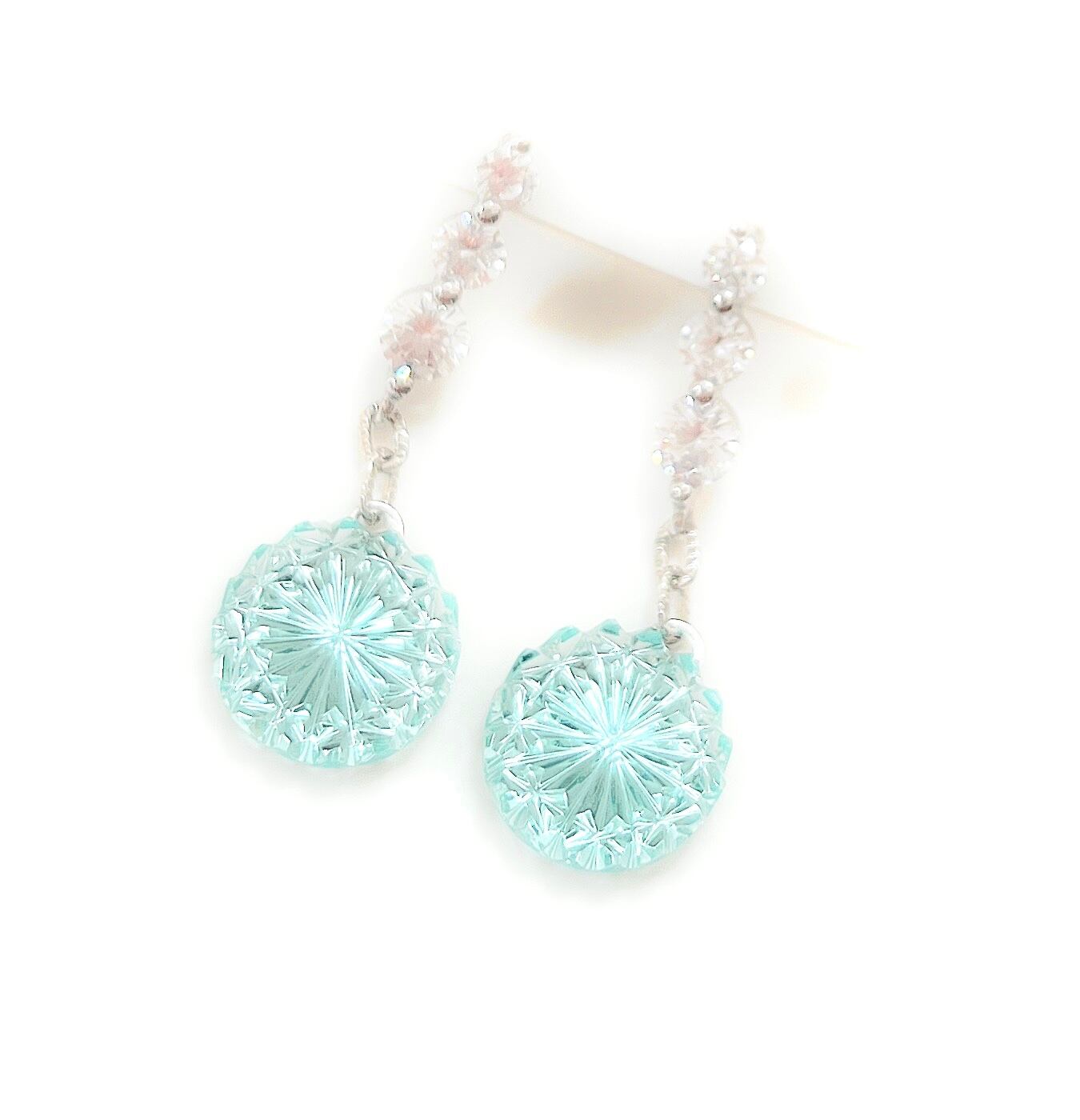 東京切子ピアス 菊 ピーコックグリーン Three diamonds より長めのサイズです。