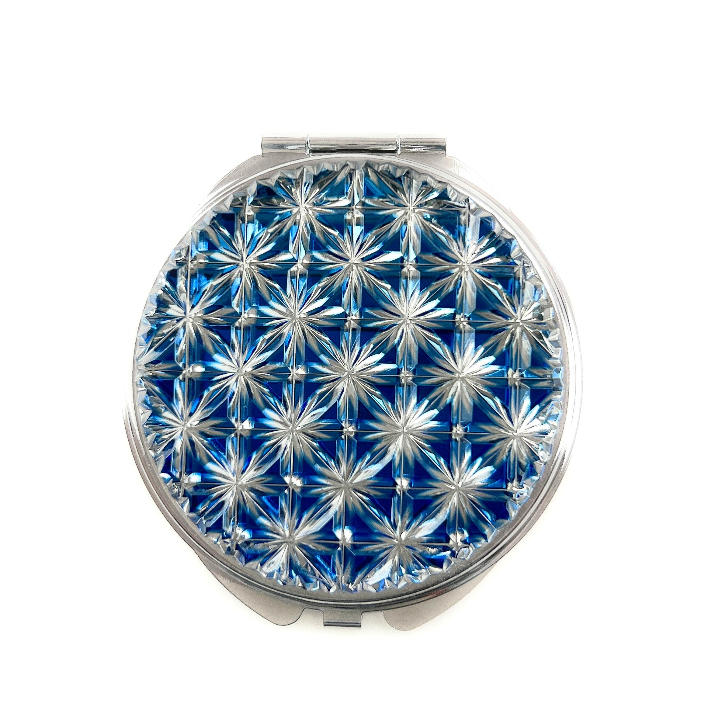 東京切子コンパクトミラー 麻乃葉 Silver "Sapphire" ~サファイア〜
