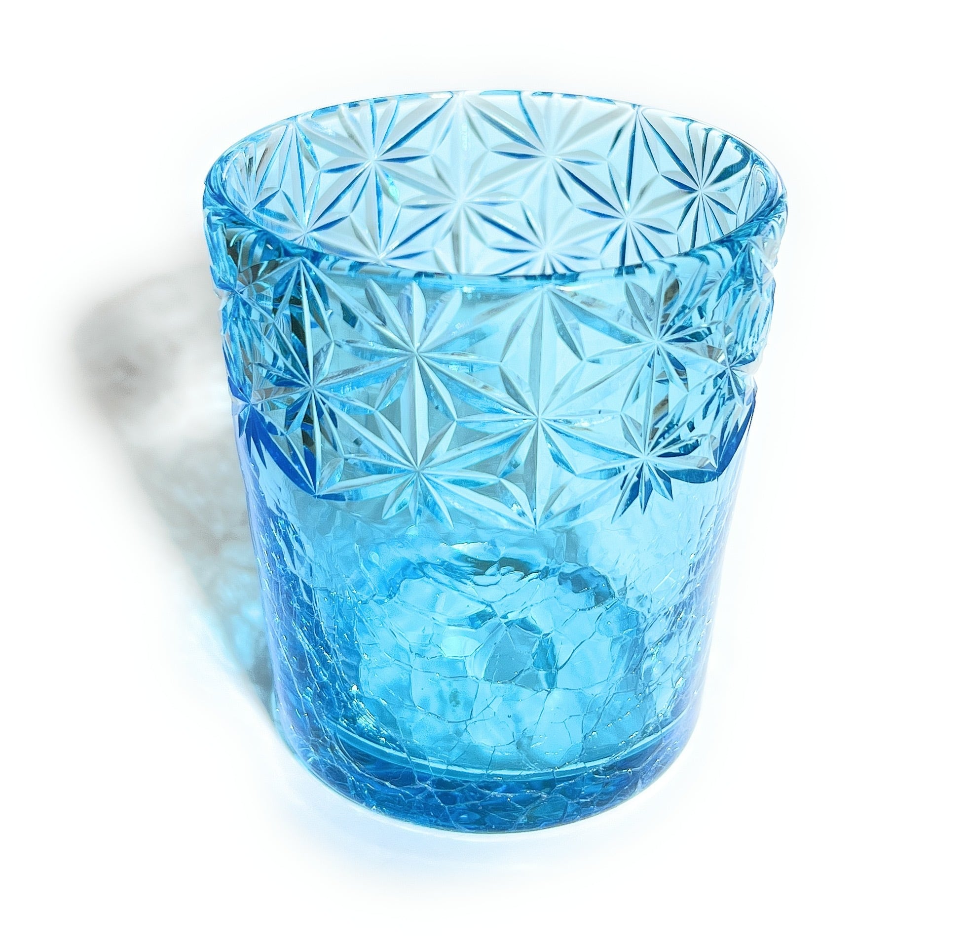 手磨きで丁寧に艶出し加工をされた上部の切子部分と、クラッシュ加工が施されたグラスの下部分のコントラストは、キラキラ°˖✧✧˖°大好き女子ならば目が♥になってしまいます♪
