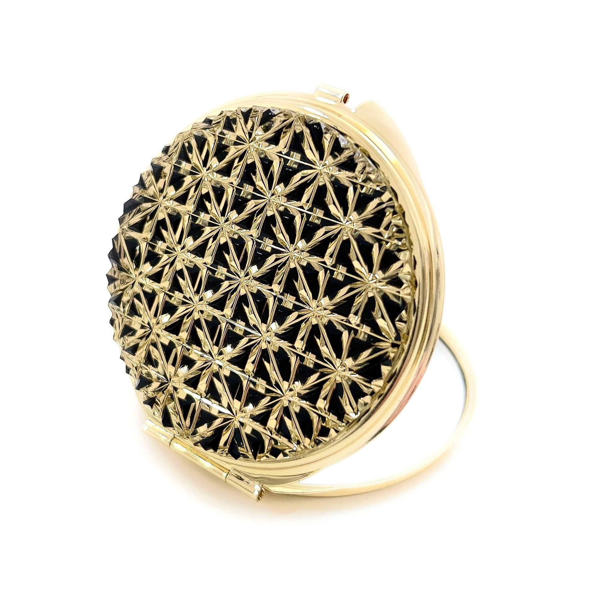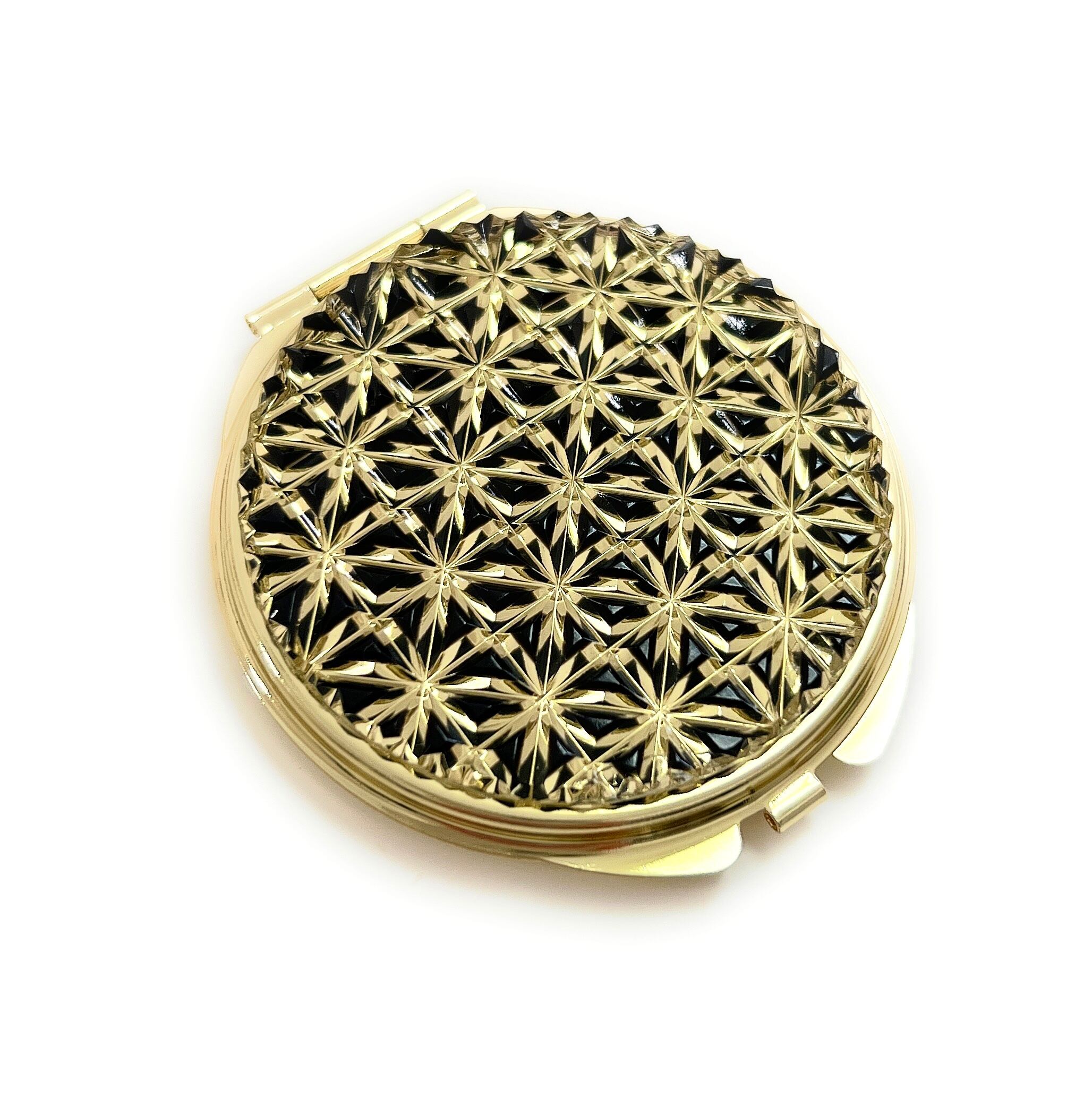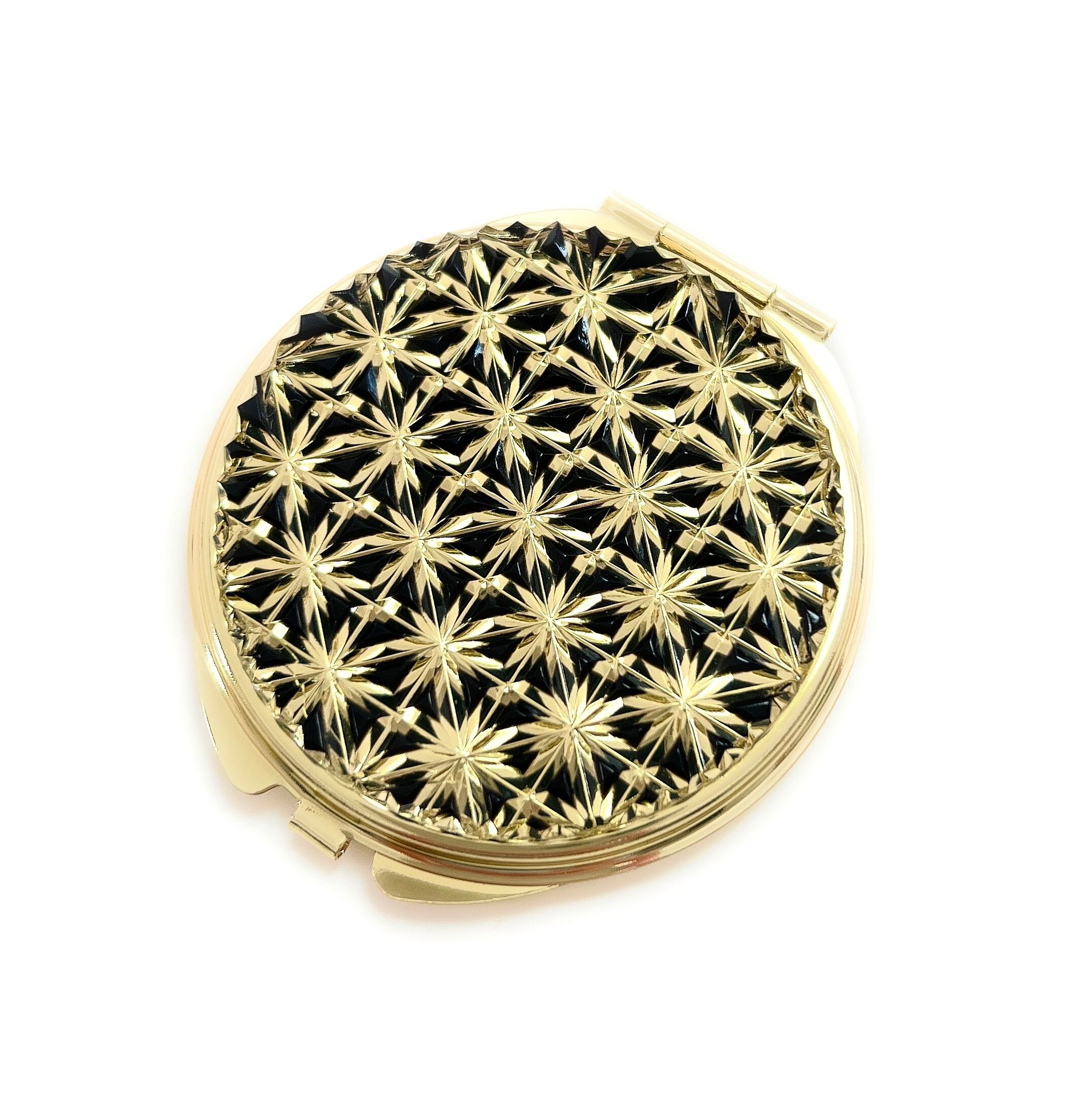 東京切子コンパクトミラー 麻乃葉 ブラック イエローゴールド