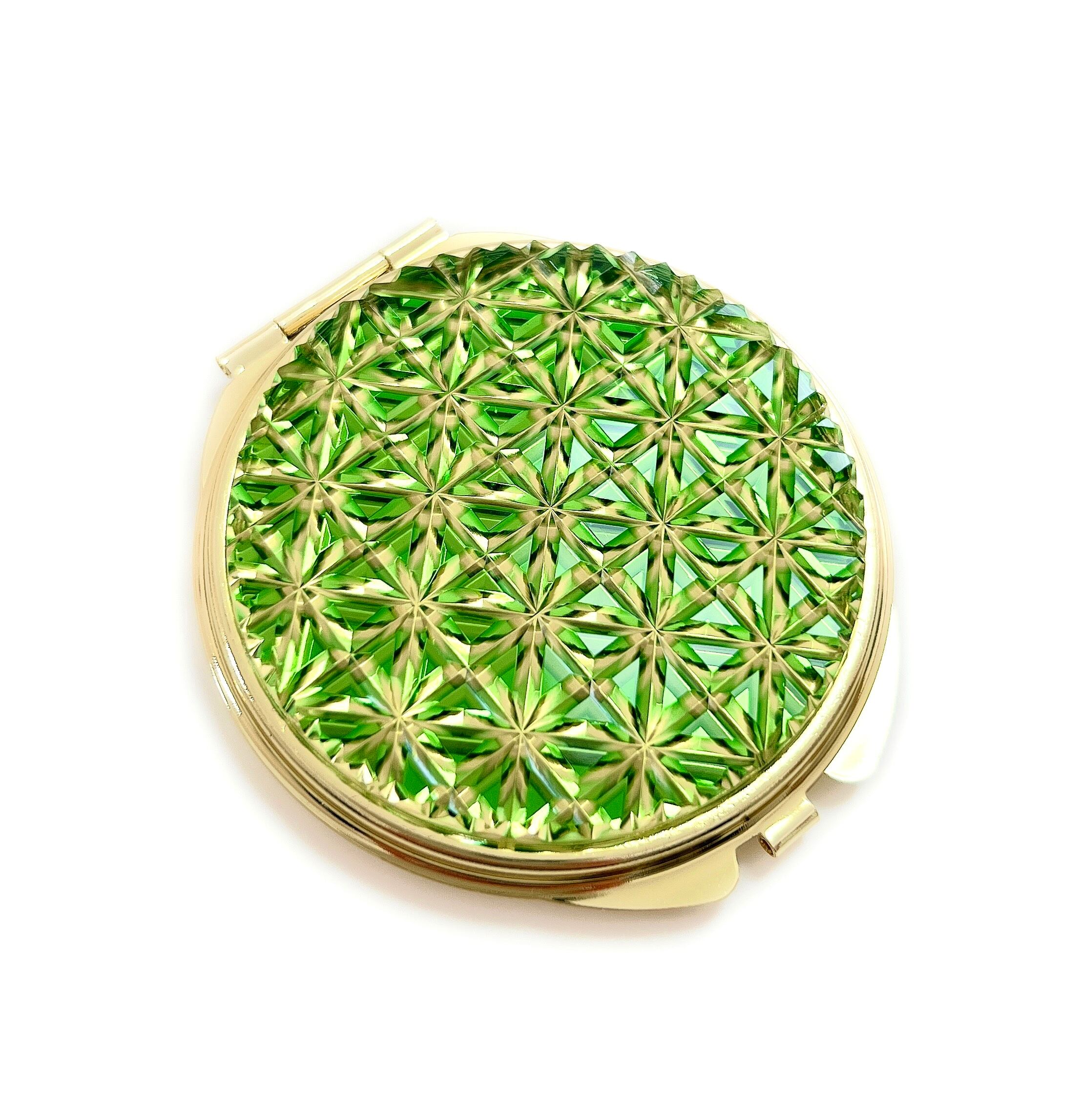 東京切子コンパクトミラー 麻乃葉 グリーン イエローゴールド
