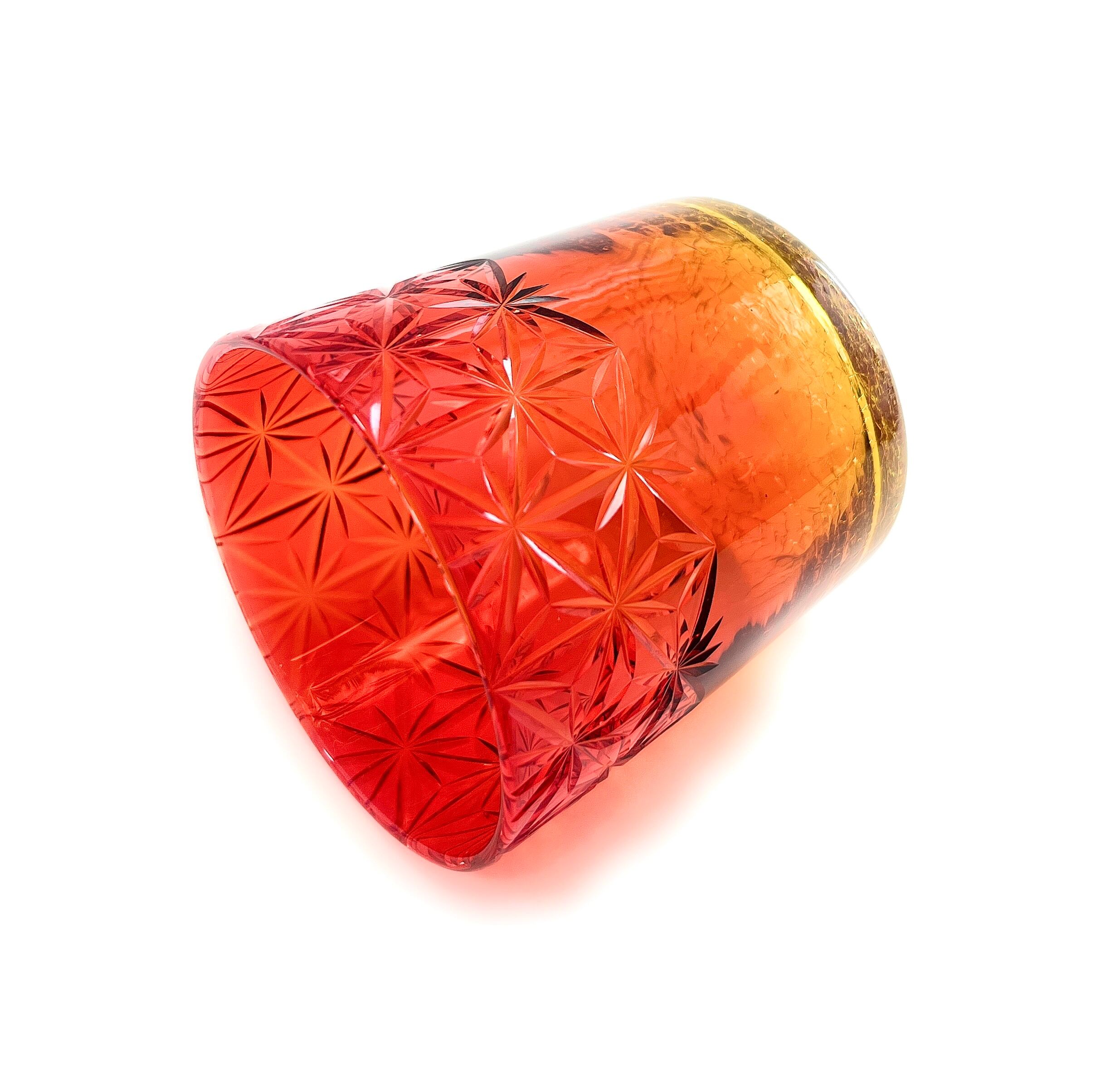 「贅沢仕上げ」琉球ガラスx東京切子ロックグラス 千代紙 サンセット