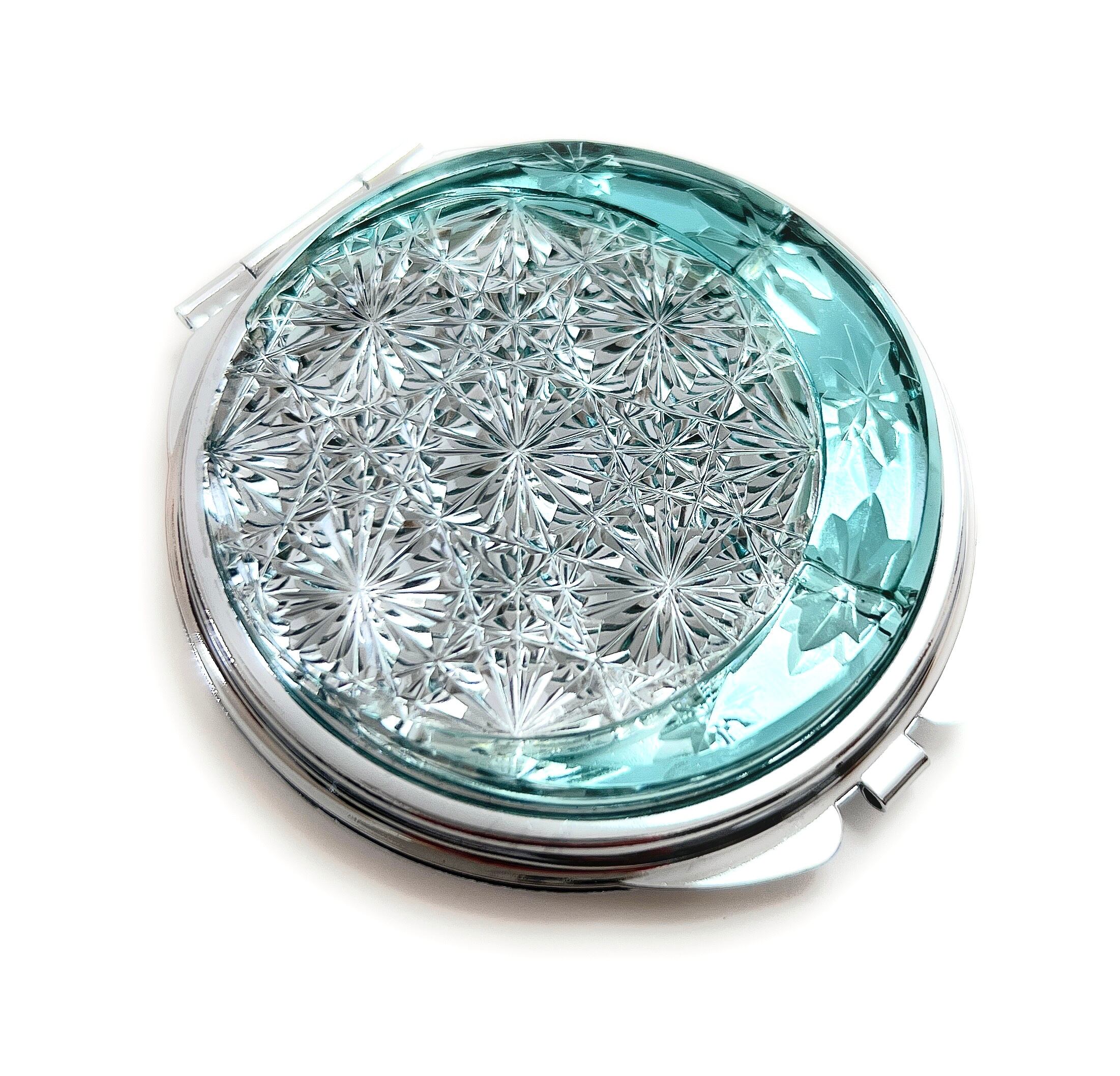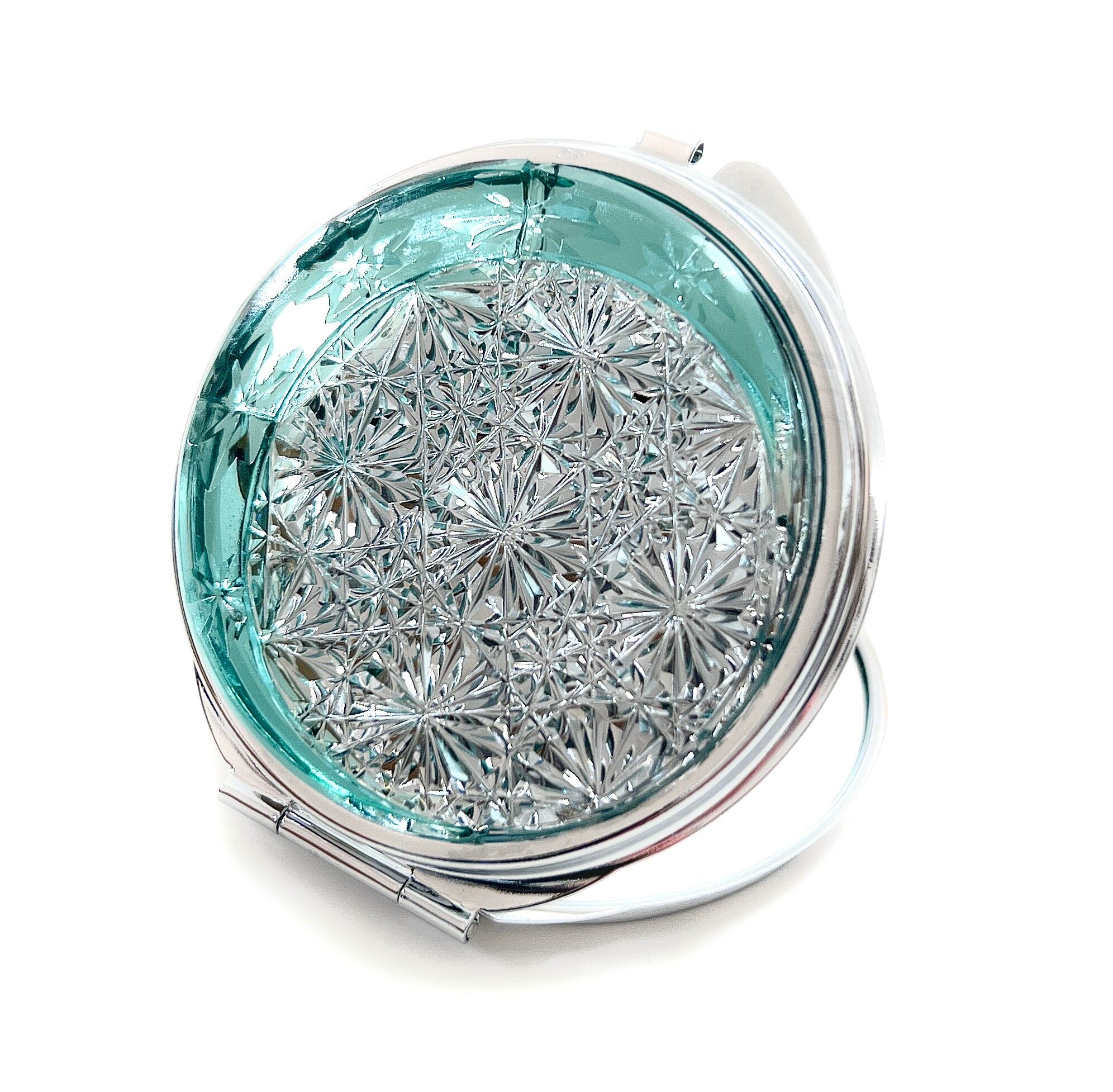 東京切子コンパクトミラー 月姫 ピーコックグリーン Silver