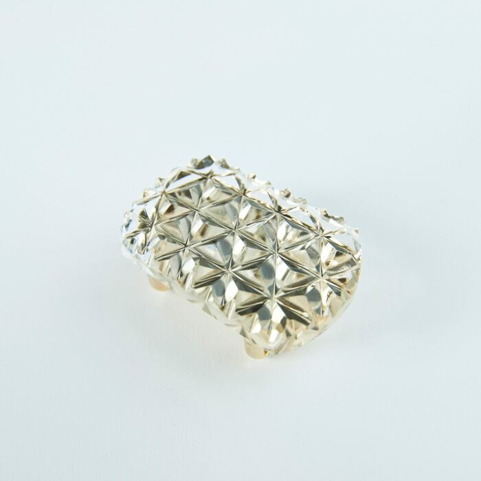 東京切子帯留め お太鼓 麻の葉六角 クリアーゴールド