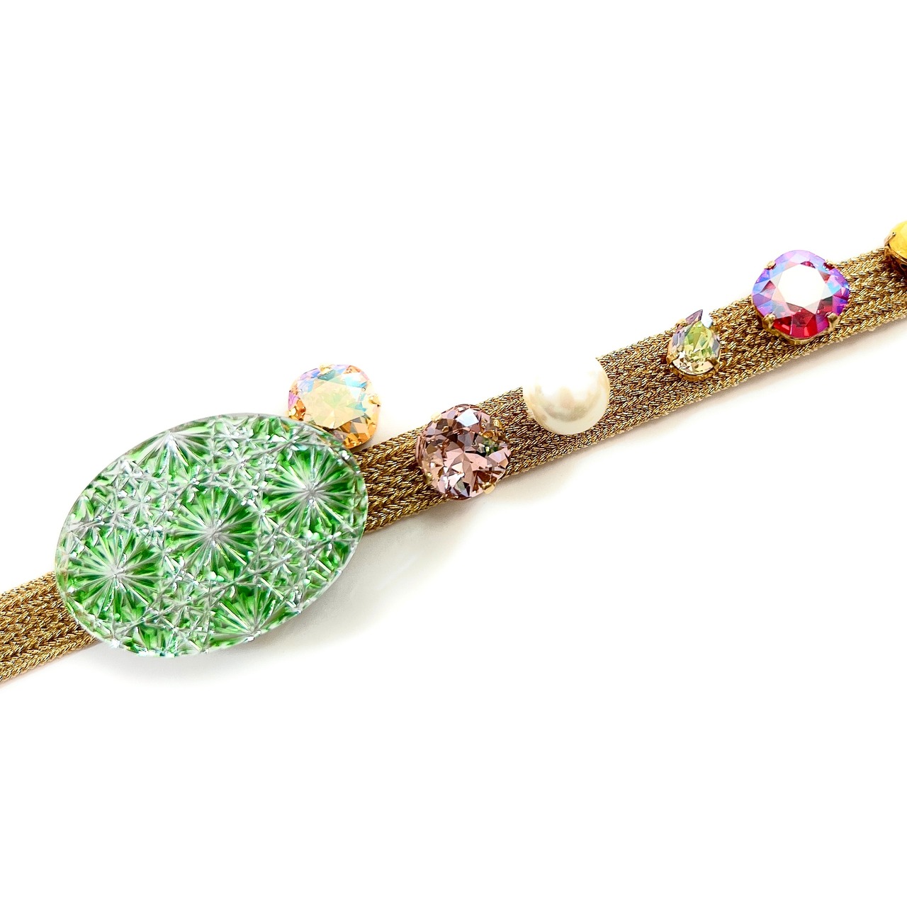 東京切子帯留め 技 オーバル 菊繋ぎ ライトグリーン