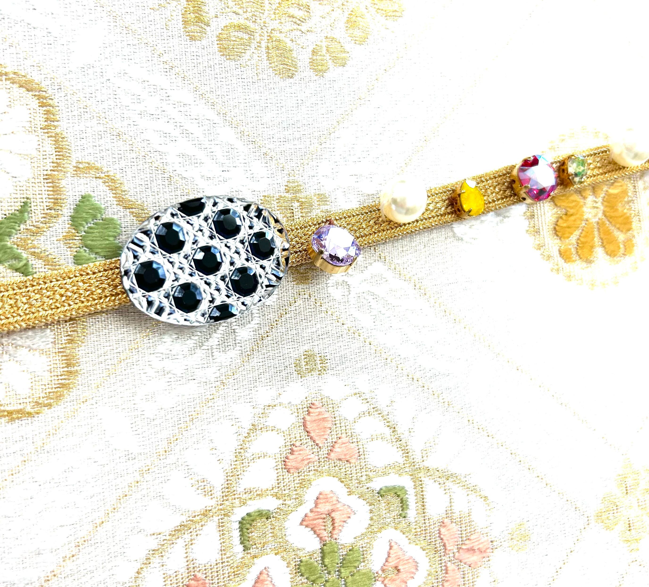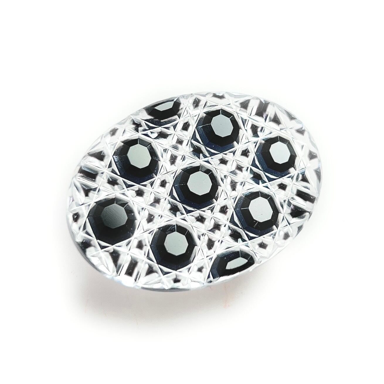 東京切子帯留め オーバル しあわせ籠目 ブラック